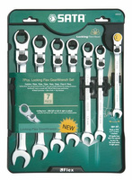 Sata zestaw 7 kluczy płasko-oczkowych łamanych z grzechotką i blokadą