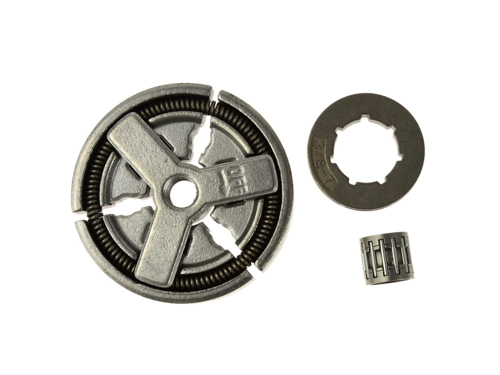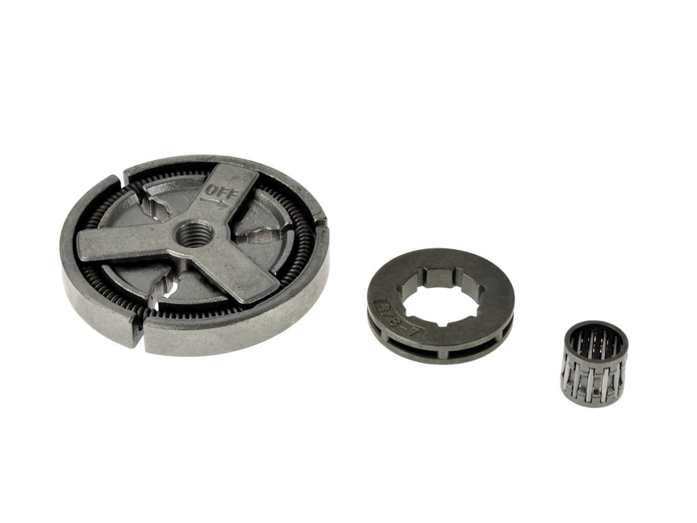 Wysokiej jakości sprzęgło, łożysko i pływająca zębatka przeznaczone do pił spalinowych chińskiej produkcji.