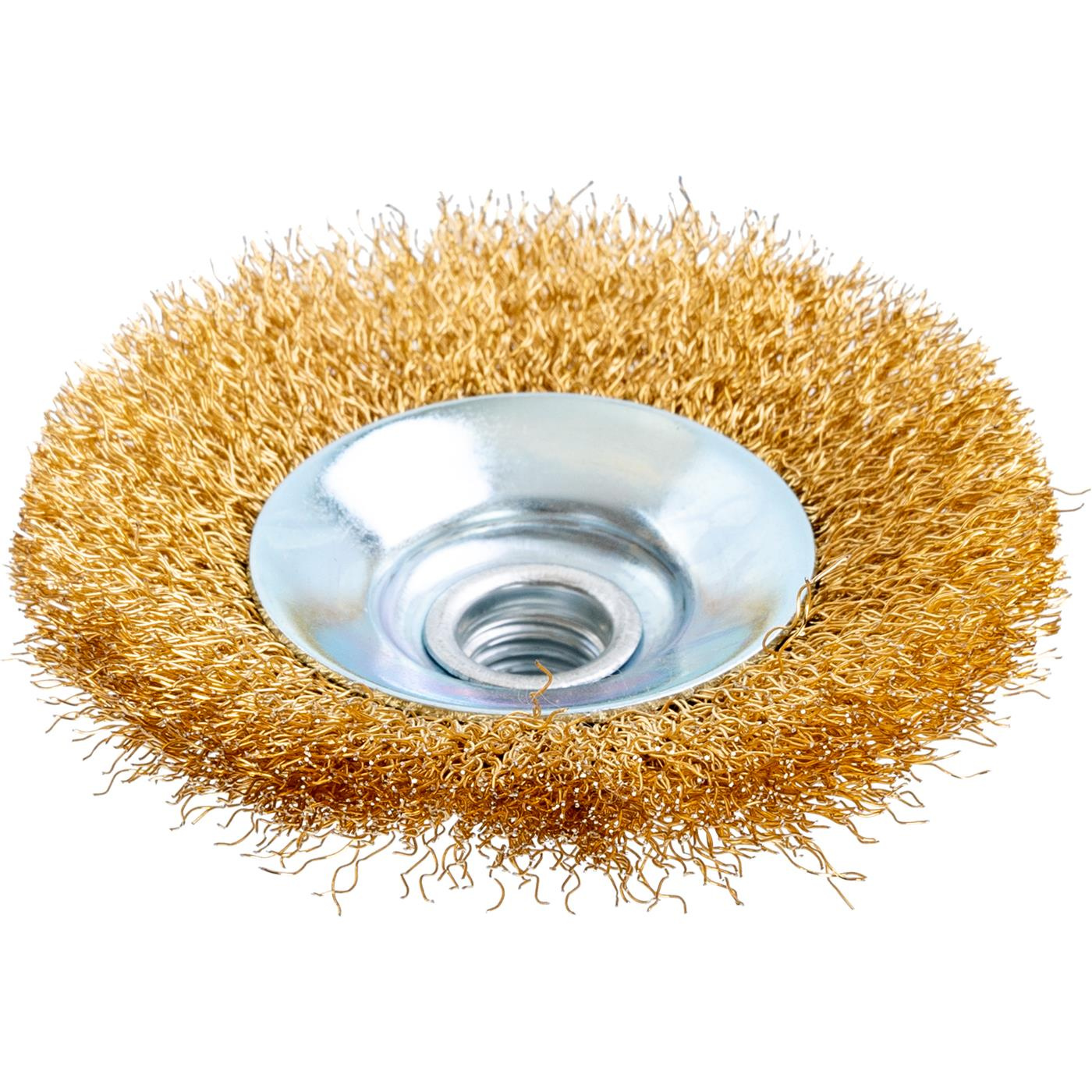 Szczotka druciana stożkowa o średnicy 100 mm do szlifierki kątowej 125 mm, uchwyt M14.