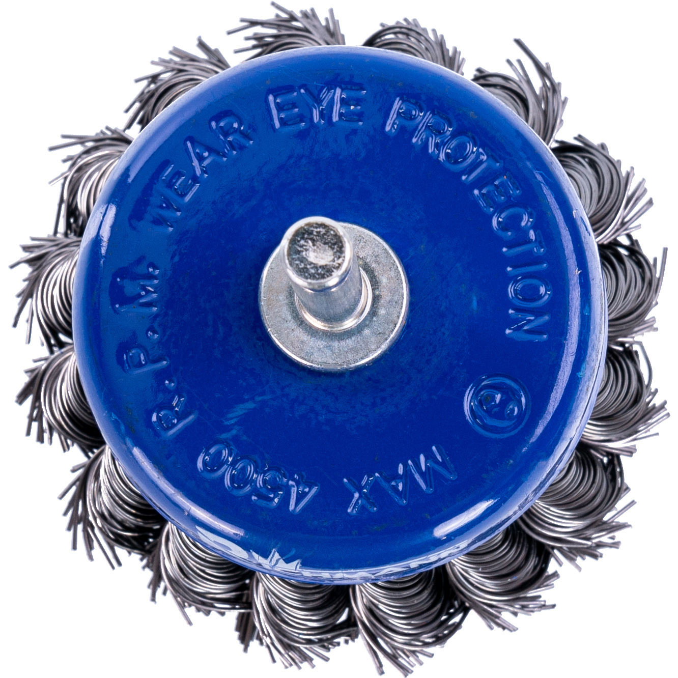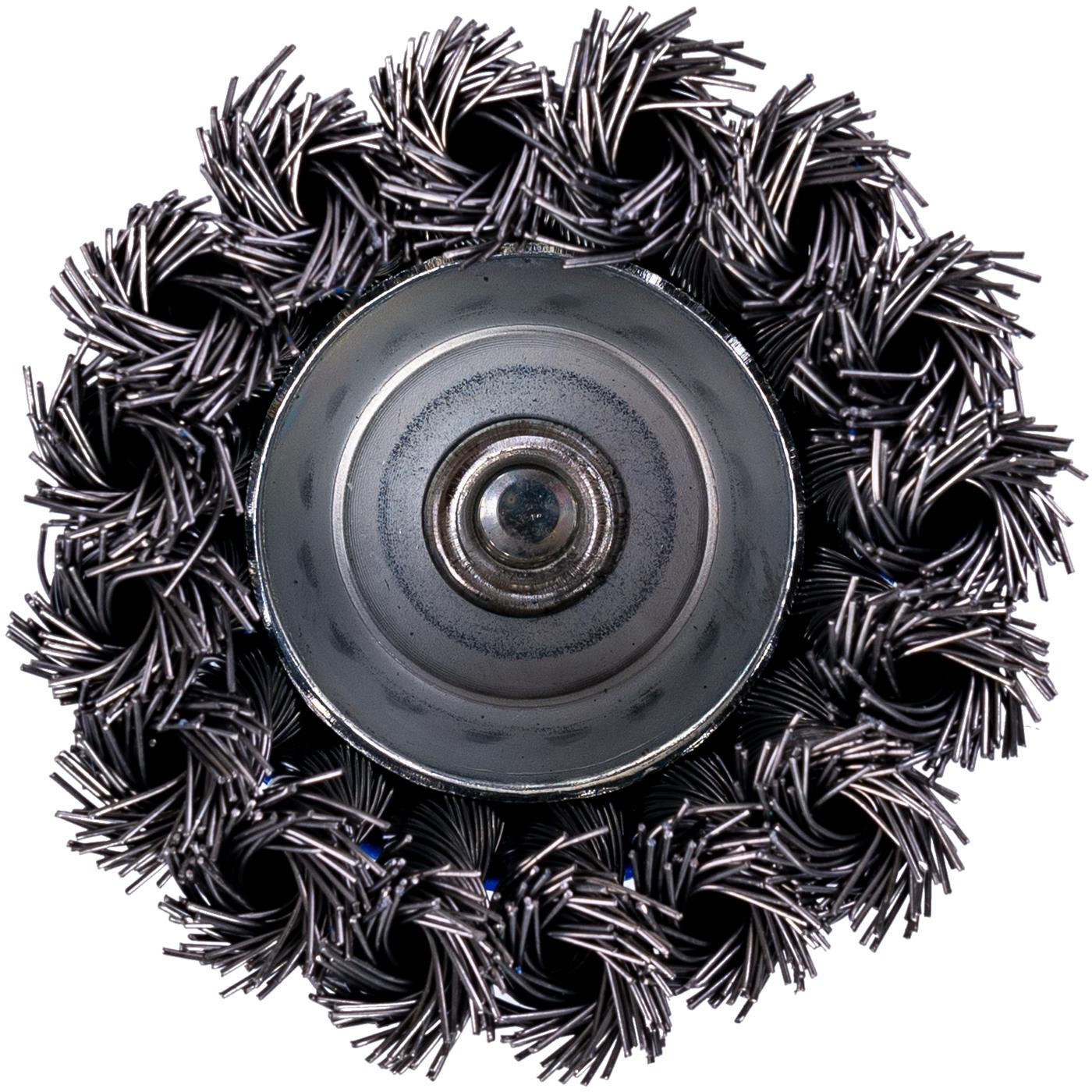 Szczotka druciana doczołowa o średnicy 75 mm do wiertarki.