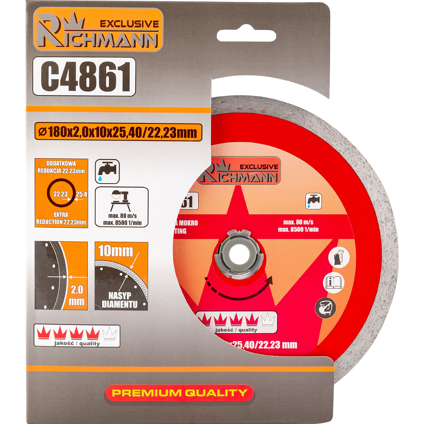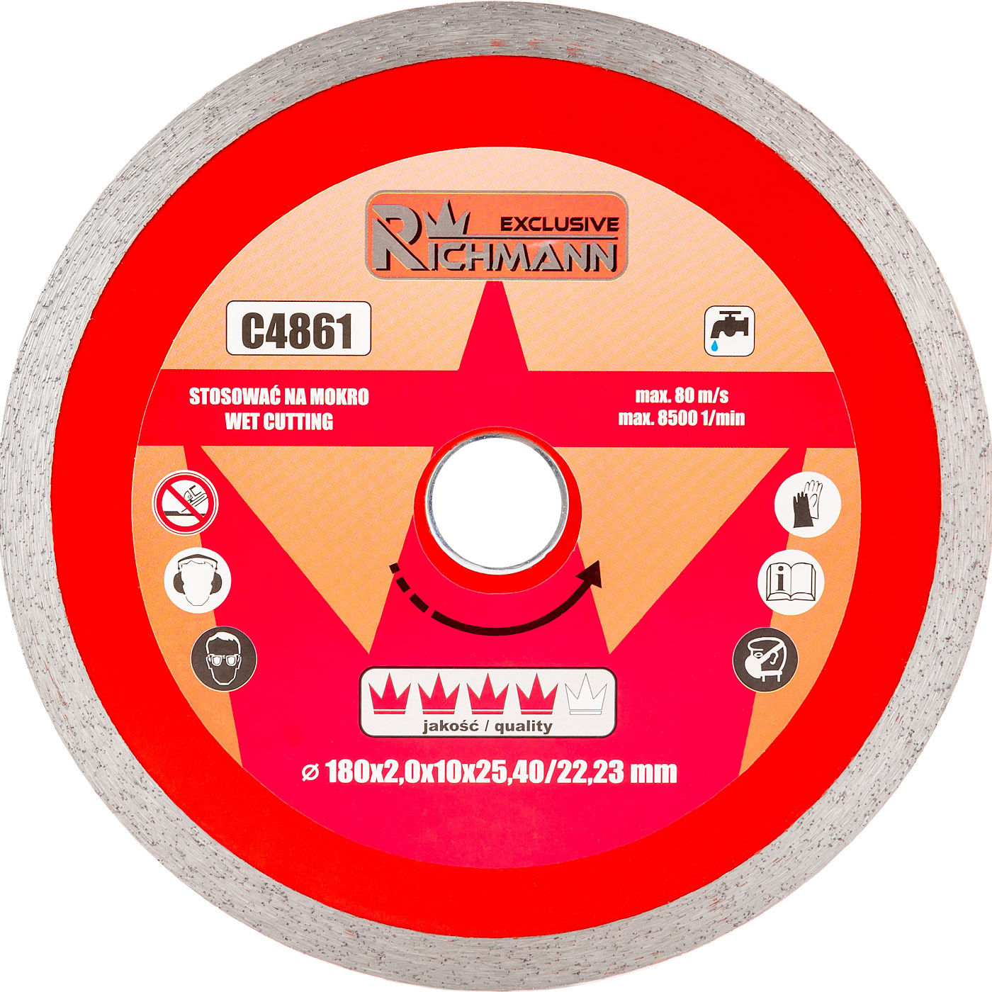 Tarcza diamentowa pełna przeznaczona do cięcia materiałów takich jak: płytki ceramiczne, gres, marmur, glazura, płytki kamienne, szkło, porcelana.