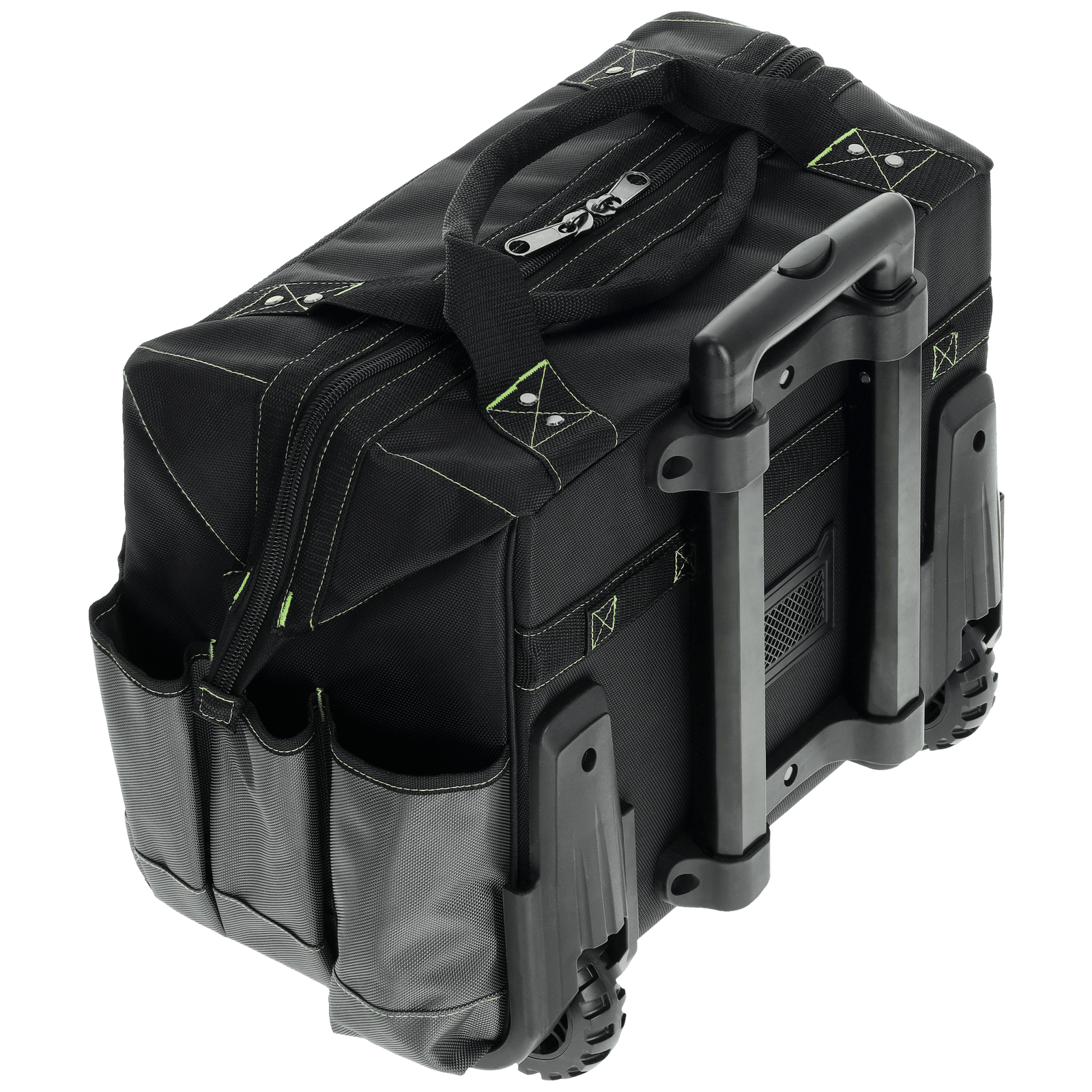 Wzmocniony, teleskopowy uchwyt z blokadą do holowania torby;