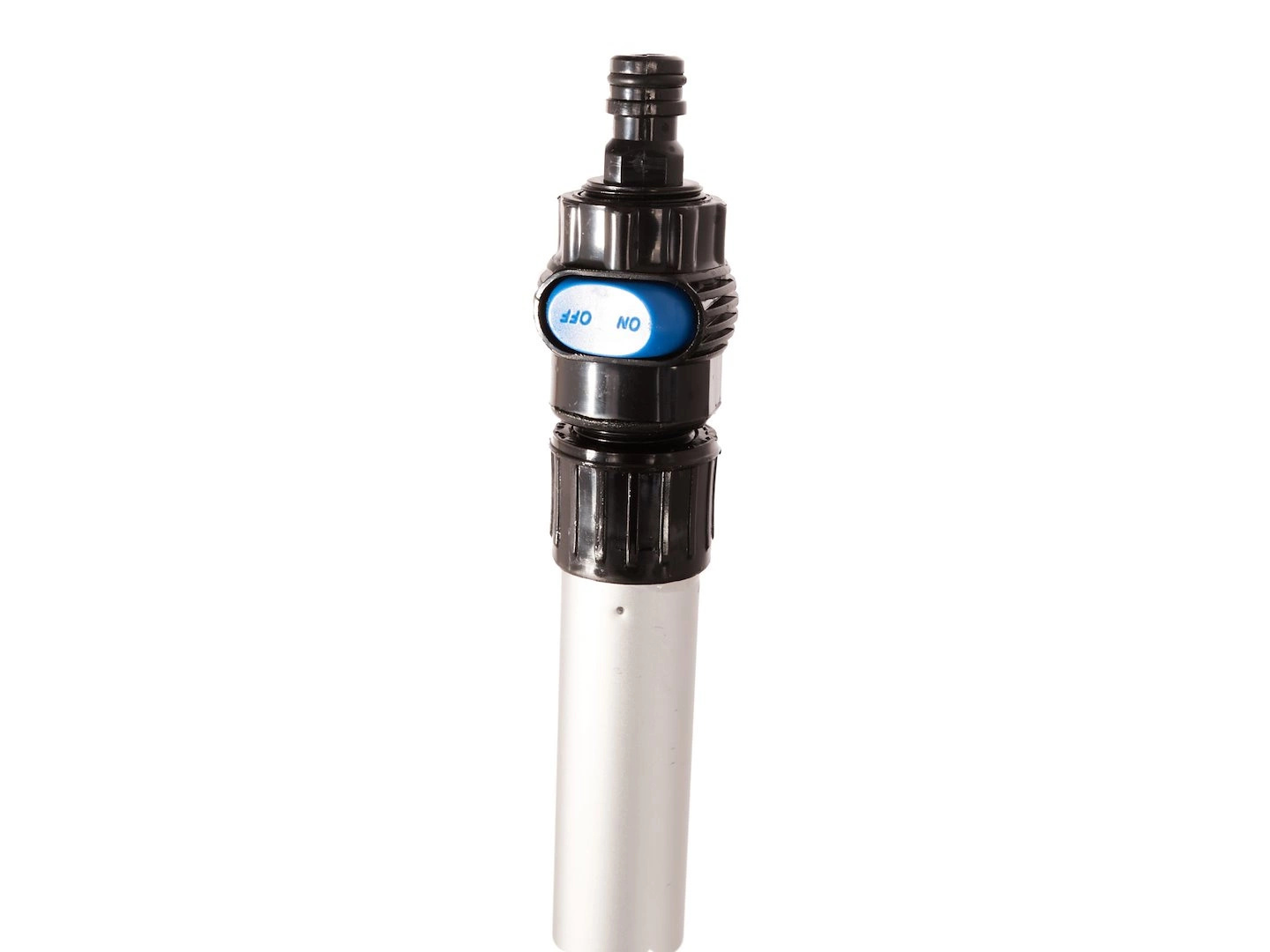 - Posiada rękojeść piankową, przełącznik włącz/wyłącz dopływ wody i złączkę do podłączenia węża
