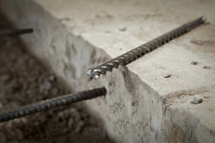 - Wierzchołek centrujący ułatwia rozpoczęcie wiercenia. Geometria widii 4x90° gwarantuje doskonale gładkie otwory oraz redukuje ryzyko zakleszczenia się wiertła przy natrafieniu na pręt zbrojeniowy.