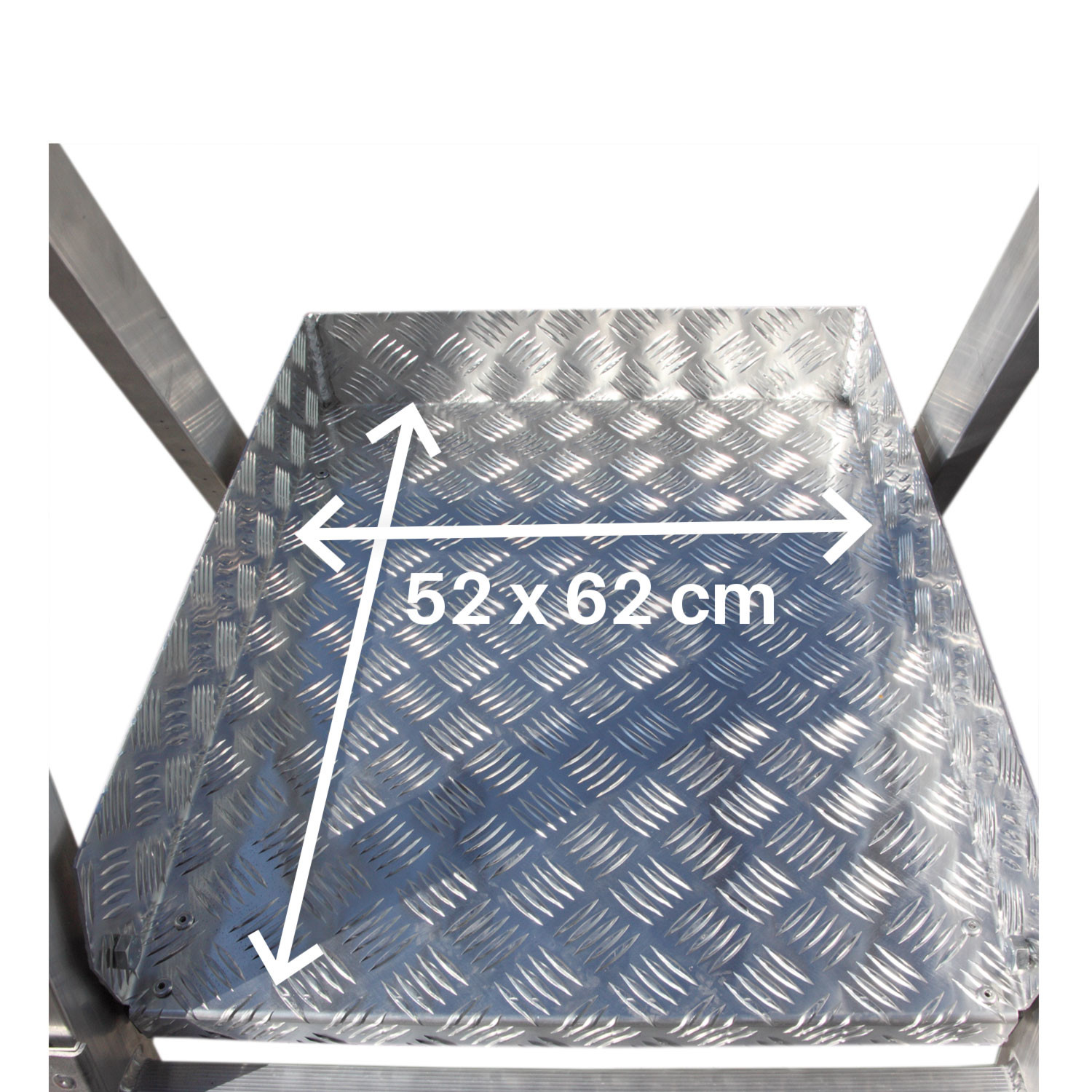 - Platforma robocza 52×62 cm z bortnicami i barierkami zabezpieczającymi,