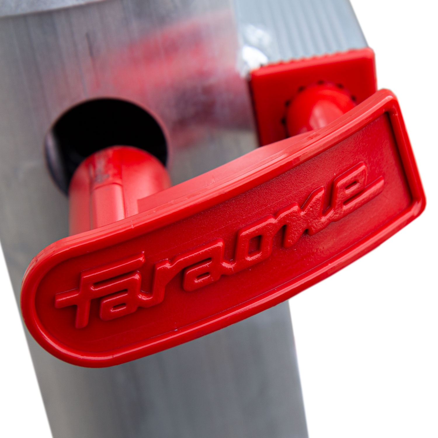 - Dzięki lotniczej technice nitowania przymocowano ryflowane, antypoślizgowe szczeble o przekroju 3 x 3 cm. Ten sposób umożliwiają podłużnicom pełnienie roli prowadnic dla górnej części podestu. Technika lotnicza daje gwarancję trwałości połączenia na długi okres użytkownika.