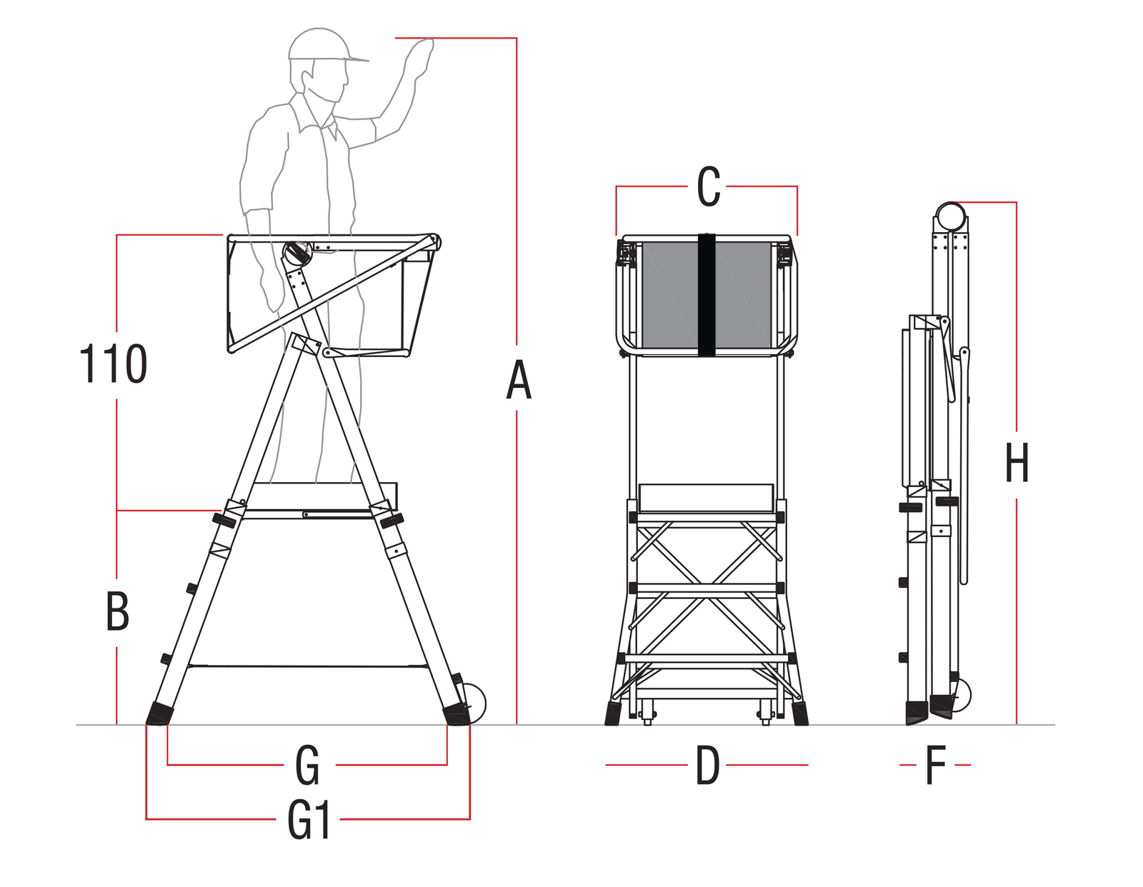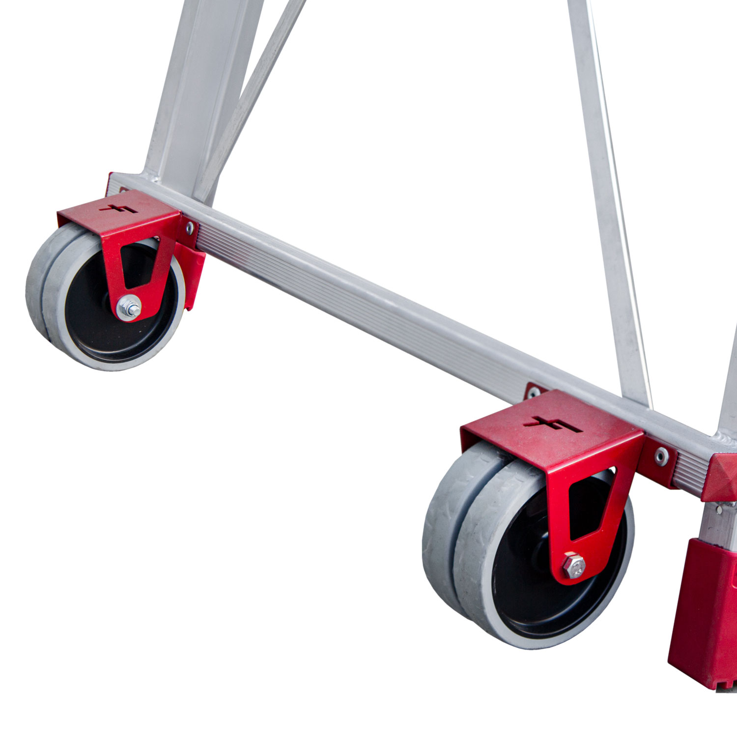 - Wyposażony w dwie solidne podwójne rolki jezdne co pozwala na przemieszczanie podestu po trudnych nawierzchniach.