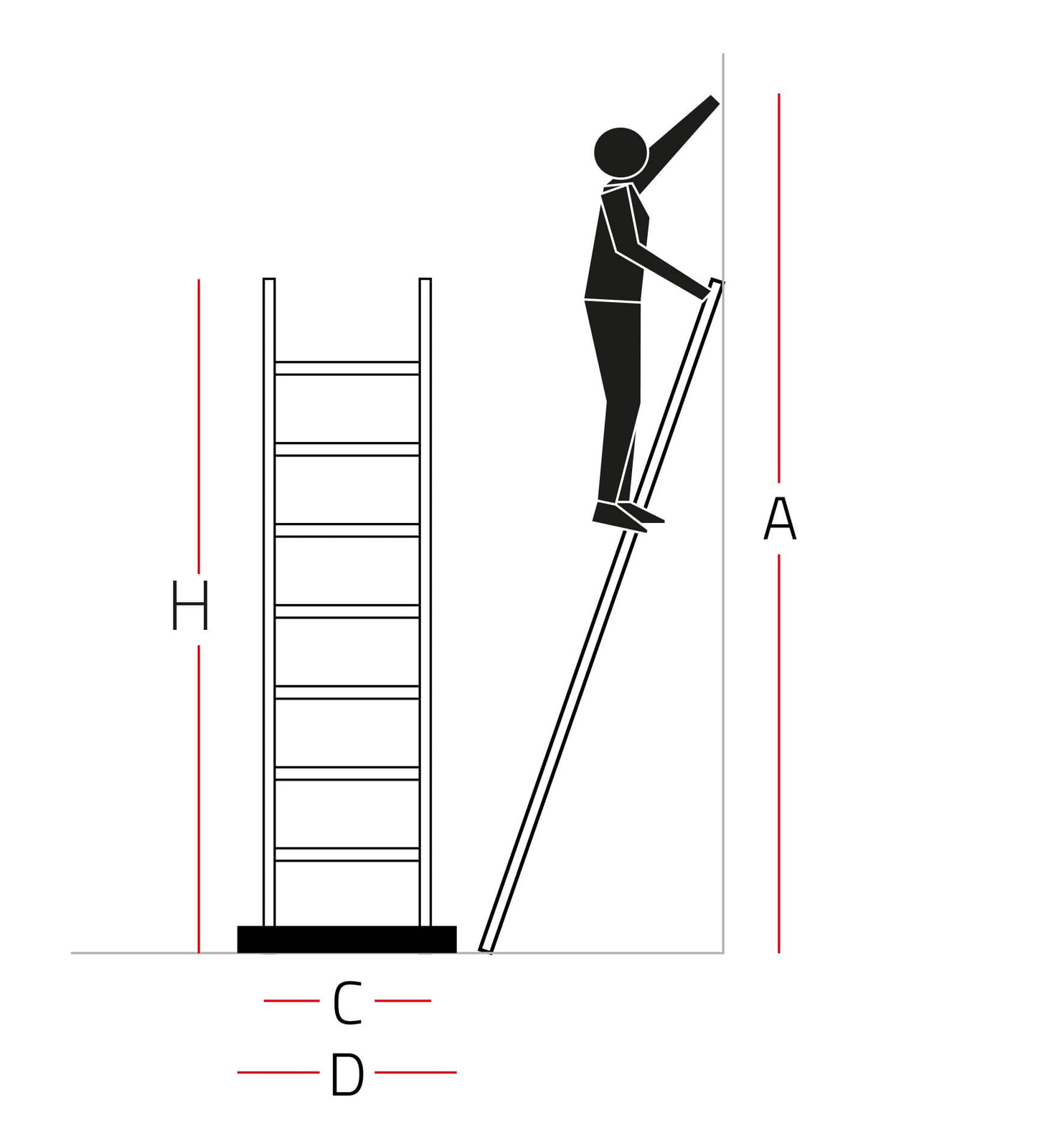 • Podłużnice drabiny wykonane zostały z wytrzymałych, zamkniętych  profili aluminiowych o przekroju 60 x 25 mm oraz 80 x 25 mm, dodatkowo boki wzmocnione 1,2 mm. Jakość  użytego do tego materiału gwarantuje dużą sztywność i trwałość drabiny.