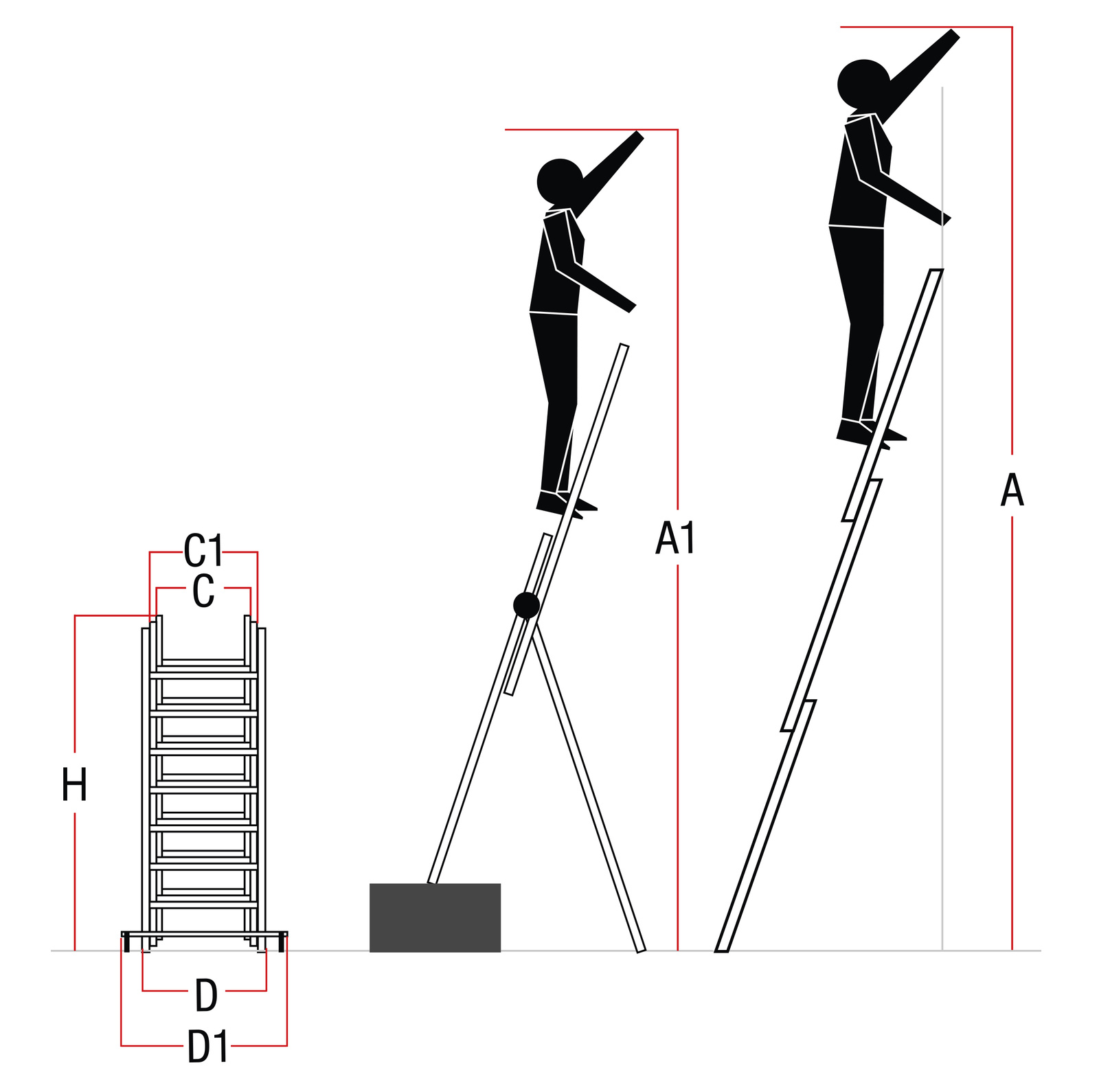 - Drabina służy jako przystawna, rozstawna i jako drabina na schody, klatki schodowe,