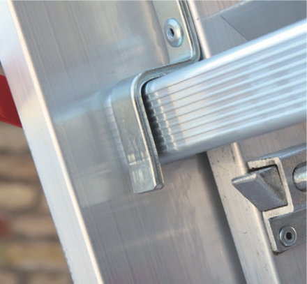 Podłużnice drabiny wykonane zostały z wytrzymałych, zamkniętych profili aluminiowych o przekroju 80 i 100 x 25 mm, dodatkowo boki wzmocnione 2,5 mm. Jakość użytego do tego materiału gwarantuje dużą sztywność i trwałość drabiny.