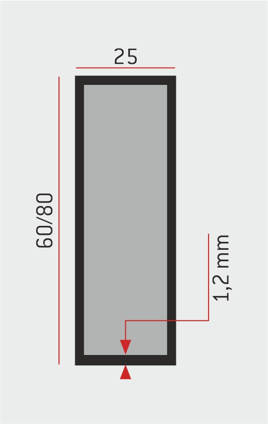 • Wzmocniony profil w zależności od modelu 60x25R oraz boki 1,2 i 2,4 mm,