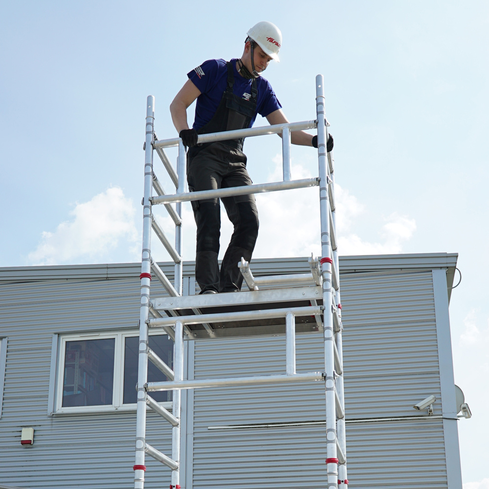 Elementy rusztowania są odporne na korozję. Po złożeniu wieża zajmuje bardzo mało miejsca, dlatego jest łatwa i wygodna w transporcie i przechowywaniu.