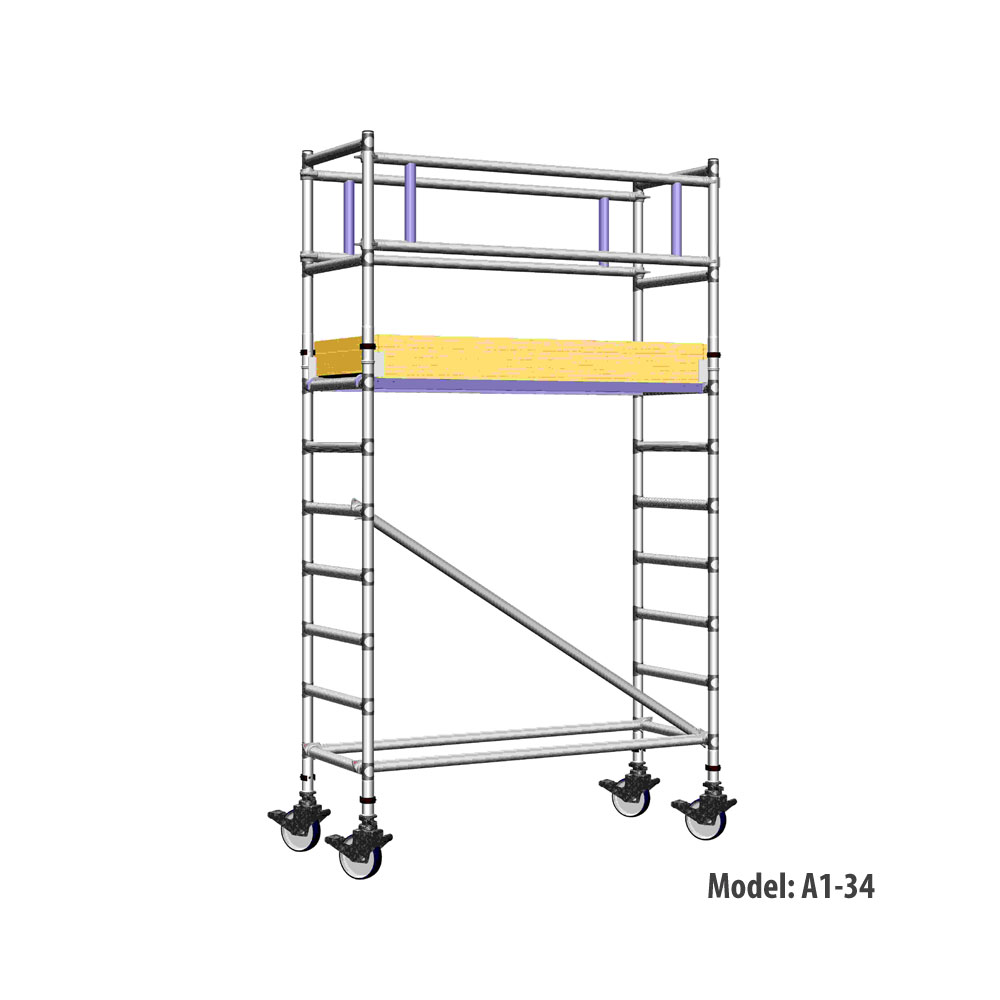 Mobilna i bezpieczna wieża (rusztowanie) do prac na wysokości. Wieża o lekkiej konstrukcji, wykonana z rury aluminiowej o średnicy 50 mm.