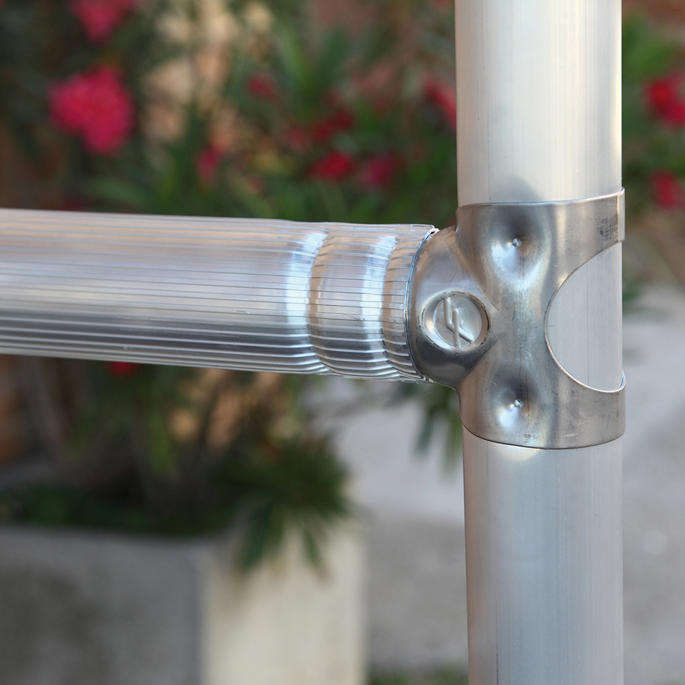 Elementy wieży są odporne na korozję. Montaż i demontaż szybki i łatwy bez użycia narzędzi.
