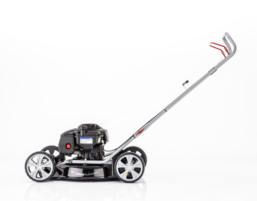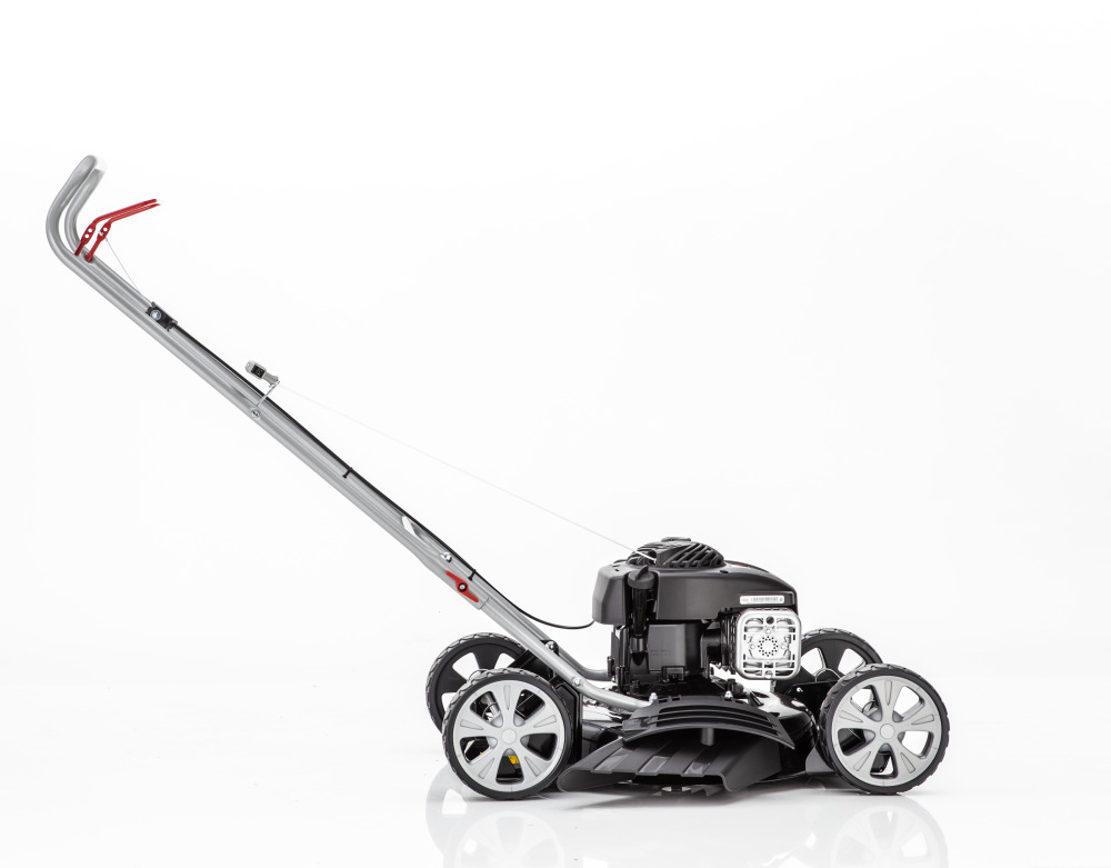 Dzięki szerokości koszenia wynoszącej 46 cm zapewnia efektywne koszenie trawników o powierzchni do 1400 m². Ponadto dzięki posiadanym funkcjom 2 w 1 (mulczowanie i wyrzut boczny) i wadze wynoszącej 26,6 kg jest świetnym pomocnikiem w ogrodach. Wysokość koszenia kosiarki mulczującej można regulować osiowo, w 4 stopniach - od 30 mm do 85 mm. Dzięki specjalnej budowie korpusu kosiarki można również wyrzucać ścinki trawy na bok. Ergonomicznie ukształtowana kierownica oraz przyjazne dla trawnika duże koła XL (220 / 205 mm) z łożyskami kulkowymi pozwalają kosić trawnik bez zmęczenia.