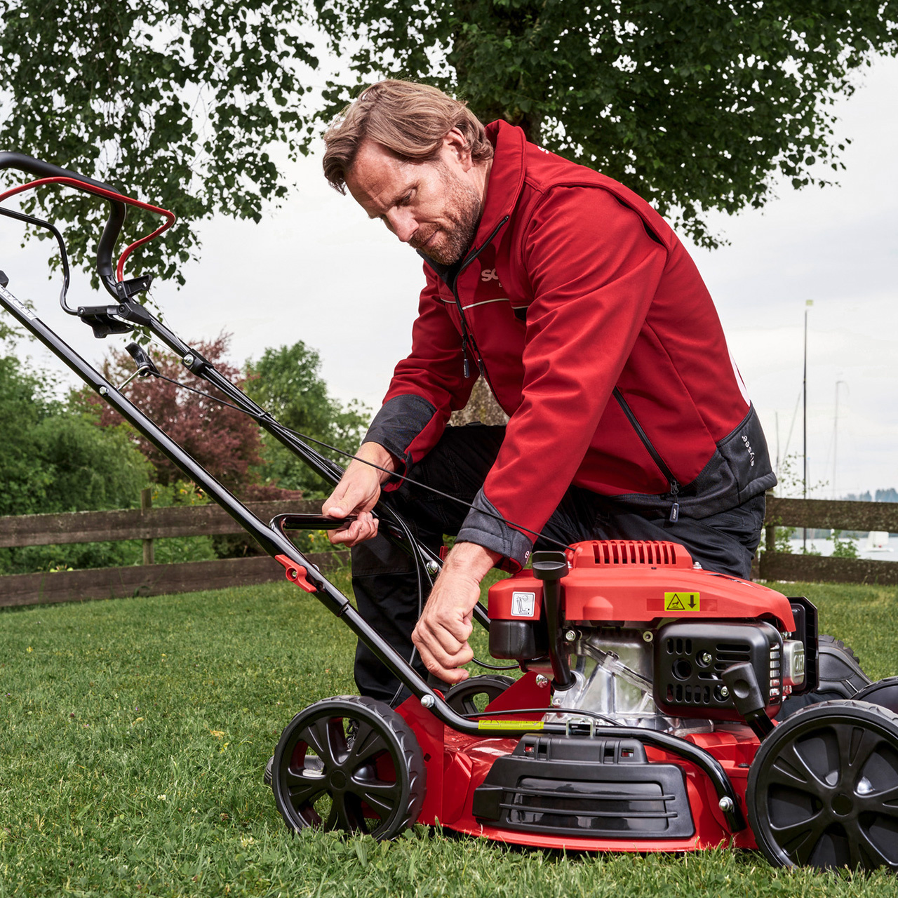 Szerokość koszenia wynosząca 46 cm zapewnia efektywne koszenie trawników o powierzchni do ok. 1400 m². Wysokość koszenia kosiarki mulczującej można regulować w 4 stopniach w zakresie od 30 mm do 85 mm. Kosiarka z funkcją mulczowania umożliwia również wyrzucanie ścinków trawy na bok. Ergonomicznie ukształtowana kierownica i płynnie poruszające się koła XL, które są delikatne dla trawnika, sprawiają, że praca jest wyjątkowo łatwa. Uproszczone koszenie z mulczowaniem jest dodatkowo wspomagane przez napęd na przednie koła.