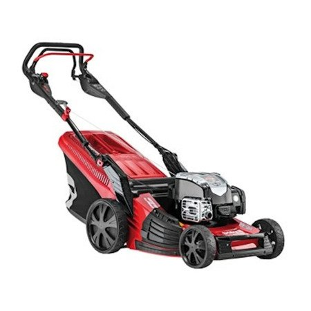 Kosiarka spalinowa solo by AL-KO 4858 VS ALU o szerokości koszenia 48 cm zapewnia wyjątkowo wydajną pracę w dużych ogrodach (o powierzchni do 1400 m²). Wysokość koszenia można regulować w 6 stopniach za pomocą centralnej regulacji od 30 mm do 85 mm. Silnik Briggs&Stratton o mocy 2,5 kW zasila nie tylko ostrze, ale również napęd kół z wariatorem. Łożyskowane koła w rozmiarze XXL w połączeniu z odpowiednim ogumieniem zapewniają przyczepność w każdym terenie. Dzięki funkcji 4INONE urządzenie może być używane do koszenia, zbierania ściętej trawy, mulczowania i wyrzutu bocznego. Kokpit zawiera łatwo dostępne elementy sterujące i wygodny gumowany uchwyt. Dzięki specjalnemu kształtowi obudowy ujście kanału wyrzutowego znajduje się wysoko, co ułatwia całkowite napełnianie 75-litrowego kosza z tkaniny. Użycie wielu aluminiowych części dopełnia bogate wyposażenie kosiarki solo by AL-KO 4858 VS ALU.