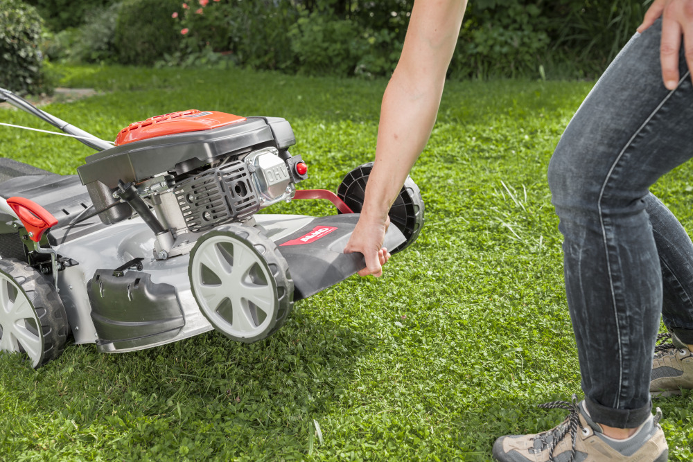 Kosiarka spalinowa o szerokości koszenia 51 cm z napędem zapewnia łatwe i wygodne koszenie. Wysokość cięcia można ustawić centralnie jednym ruchem w 7 pozycjach. od 30 mm do 75 mm, aby dostosować wysokość koszenia do własnych wymagań. Łatwy do uruchomienia silnik o mocy 2,3 kW nadaje się do trawników o powierzchni do 1800 metrów kwadratowych. Dzięki aerodynamicznej obudowie z blachy stalowej uzyskuje się optymalne wyniki zbierania trawy do kosza. Oznacza to również, że nie musisz tak często opróżniać 60-litrowego kosza. Ergonomicznie ukształtowana kierownica, przyjazne dla trawnika duże koła XL (175 / 200 mm) z łożyskami kulkowymi oraz napęd pozwalają kosić trawnik bez zmęczenia.