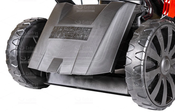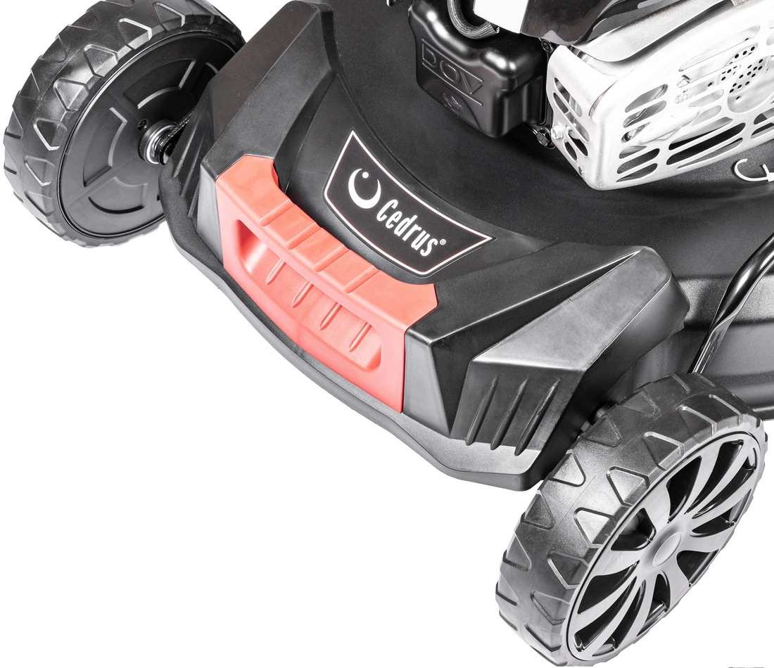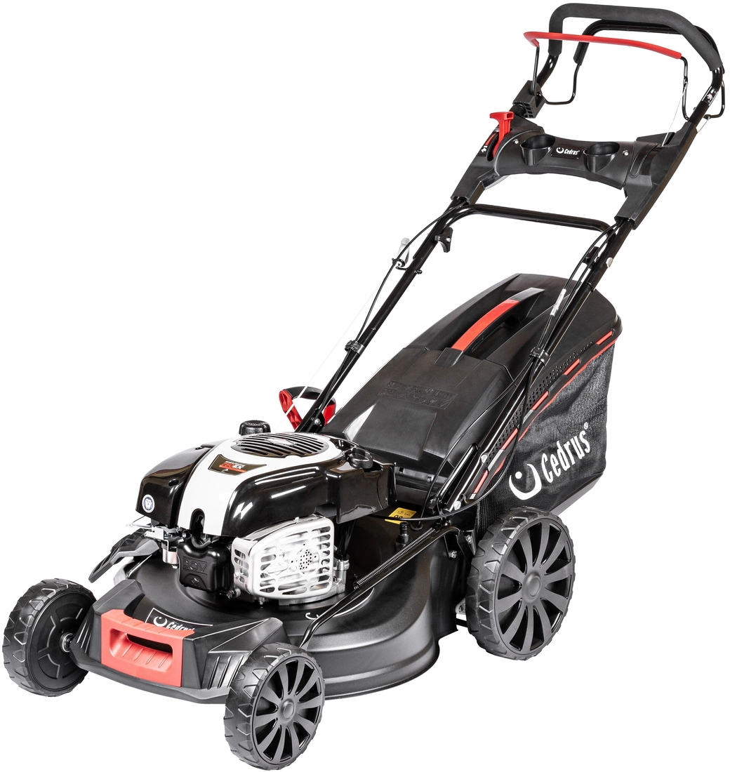 Kosiarka spalinowa Cedrus KS53S-Bto model wyposażony w napęd oraz amerykański silnikBriggs&Stratton 750EX . Wszystkie elementy naszych nowych kosiarek serii KS zostały starannie dobrane i sprawdzone, aby każdy użytkownik mógł się cieszyć ich niezawodnością i jakością. Kosiarka CEDRUS KS53S-B posiadasilnik o mocy 2,7kW przy 2800obr/min,kosz o pojemności 65lze wskaźnikiem napełnienia,centralną regulację wysokości koszenia, złącze do mycia podwozia kosiarki. Obudowa układu koszącego wykonana jest ze stali, a jejszerokość robocza wynosi 53cm. Na uchwycie zamontowane są dwie dźwignie jedna służy do regulacji obrotów silnika, druga to dźwignia ssania. Uchwyt wyposażony jest także w miejsce na kubek. Łatwość manewrowania zapewniają duże tylne koła oraz dobre wyważenie maszyny. Wszystkie koła są łożyskowane.