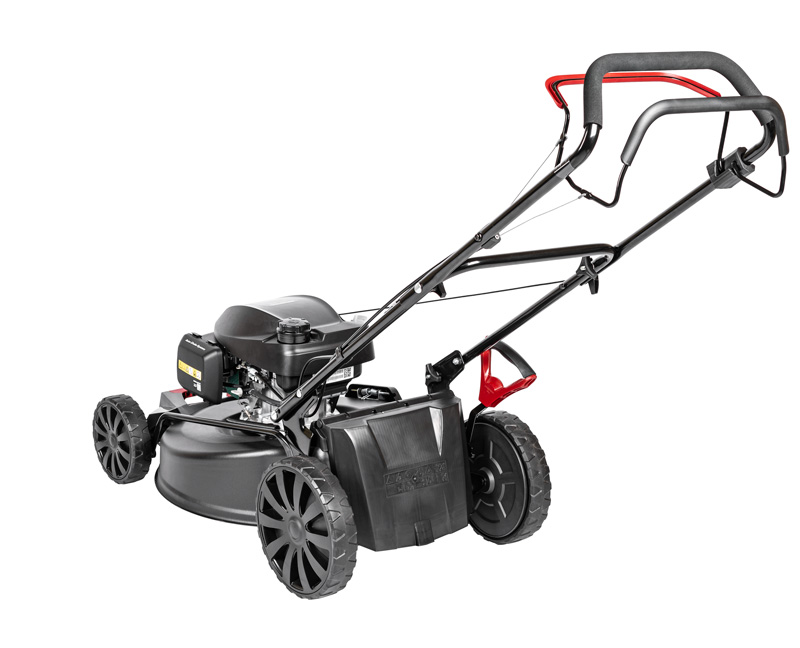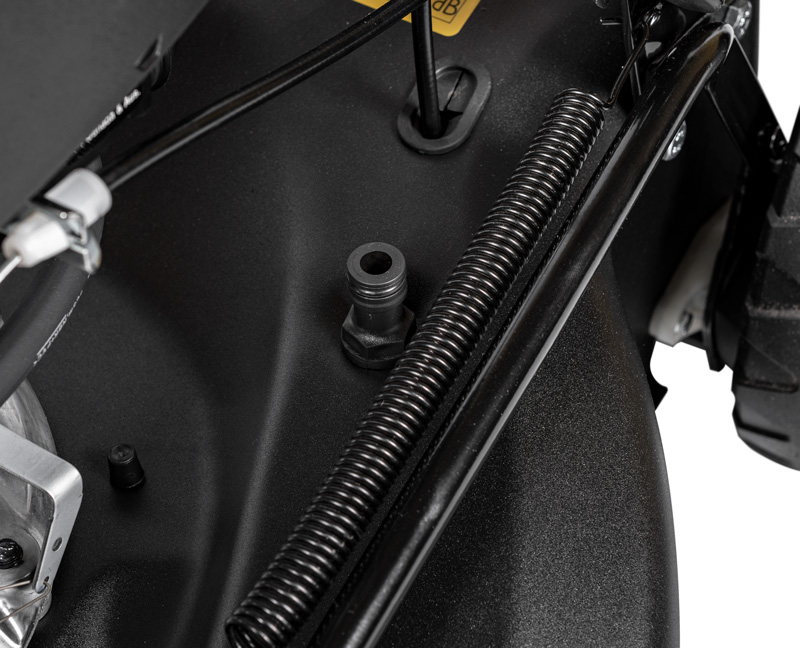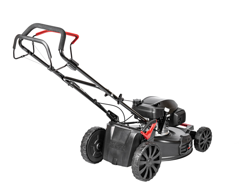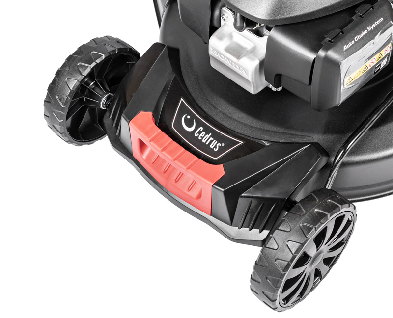 - Duże, łożyskowane koła pozwalają łatwo manewrować kosiarką