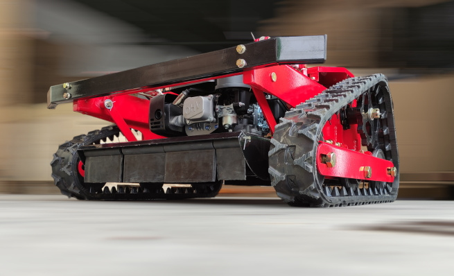 Robot został wyposażony w nóż napędzany silnikiem spalinowym ,oraz posiada zasięg pilota sterującego do 400m co niezwykle ułatwia pracę w terenie. Gąsienice są napędzane silnikiem elektrycznym ,a akumulator ładuje się w trakcie pracy. Dodatkową zaletą tego urządzenia jest mała wysokość ,oraz zerowy promień skrętu co mimo swojego rozmiaru czyni go bardzo zwrotnym. Te zalety tworzą idealną maszynę do koszenia pod niskimi konstrukcjami jak np. farmy fotowoltaiczne. Robot spalinowy JFRC55S nadaje się również do koszenia wysokich zarośli ,oraz posiada elektrycznie opuszczany dek tnący.