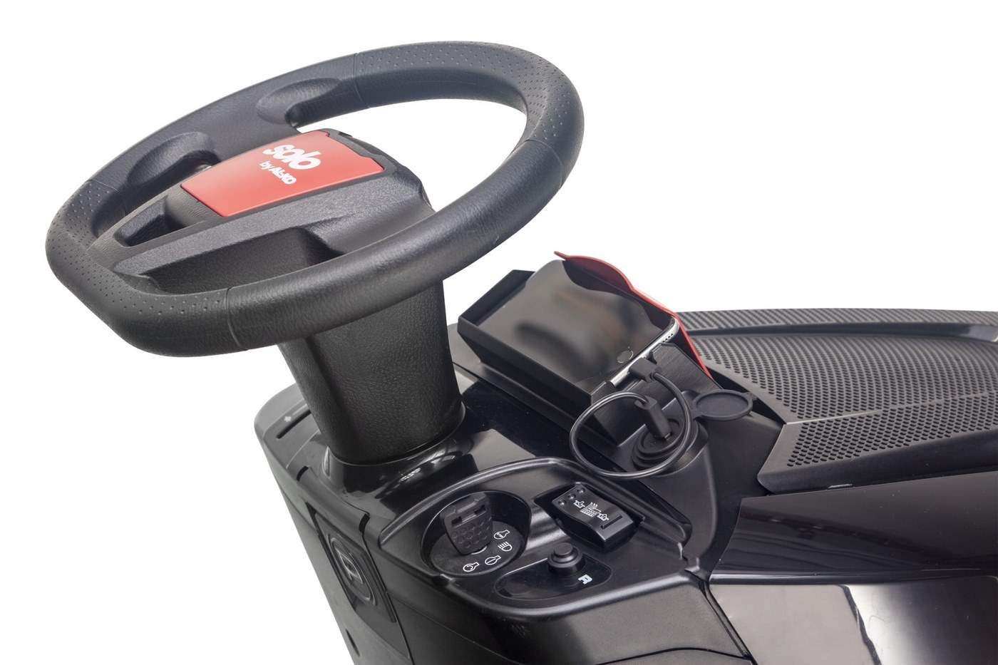 Zamień smartfon w kokpit i włóż go do stabilnego uchwytu odpowiedniego dla smartfonów od 4 do 7 cali. Nawiąż połączenie Bluetooth z traktorem, aby uruchomić inteligentny kokpit. Podczas pracy wszystkie ważne dane, takie jak pozostały czas pracy, napięcie akumulatora, poziom paliwa, efektywność koszenia, aktualny czas pracy, licznik motogodzin, prędkość lub nachylenie można odczytać bezpośrednio z kokpitu. Aby smartfon był zawsze gotowy do użycia w roli kokpitu, solo® by AL-KO T 20-105.2 HD V2 SD ma wtyczkę ładowania USB ze zintegrowaną ochroną przed kurzem i deszczem.