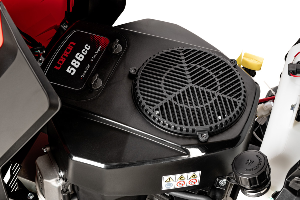 Loncin V-TWIN 586 cm3 – niezawodny i mocny, zapewnia płynną pracę nawet na dużych powierzchniach.