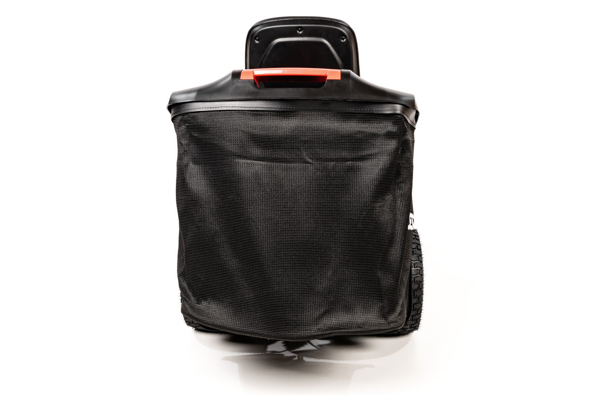 - Pojemny kosz na trawę 150 l – pozwala na dłuższe koszenie bez potrzeby częstego opróżniania.