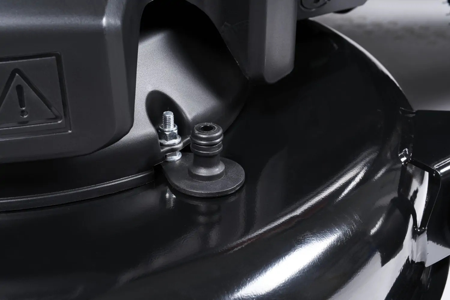 - Agregat tnący wyposażony jest w system antywibracyjny oraz dwa koło podporowe, chroniące trawnik przed "efektem skalpowania".
