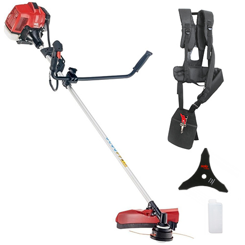 Do kosy dołączone są wygodne i trwałe szelki, tarcza tnąca do gęstych zarośli ,silnie rozrośniętej trawy i krzewów ,oraz zbiornik z miarą do tworzenia mieszanki olejowo-paliwowej.
