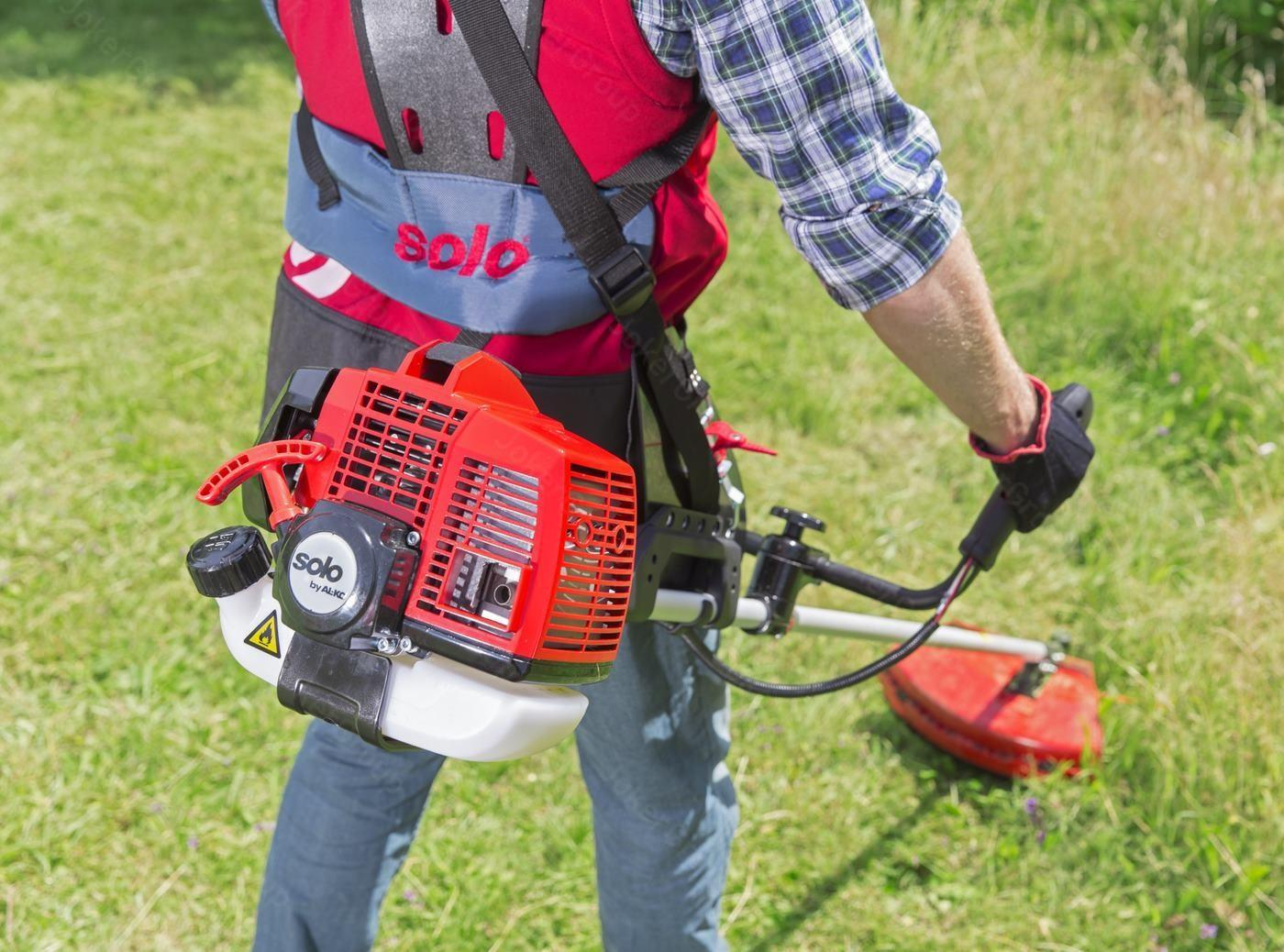 Kosa spalinowa solo® by AL-KO 140 B z pasem nośnym i tarczą tnącą.