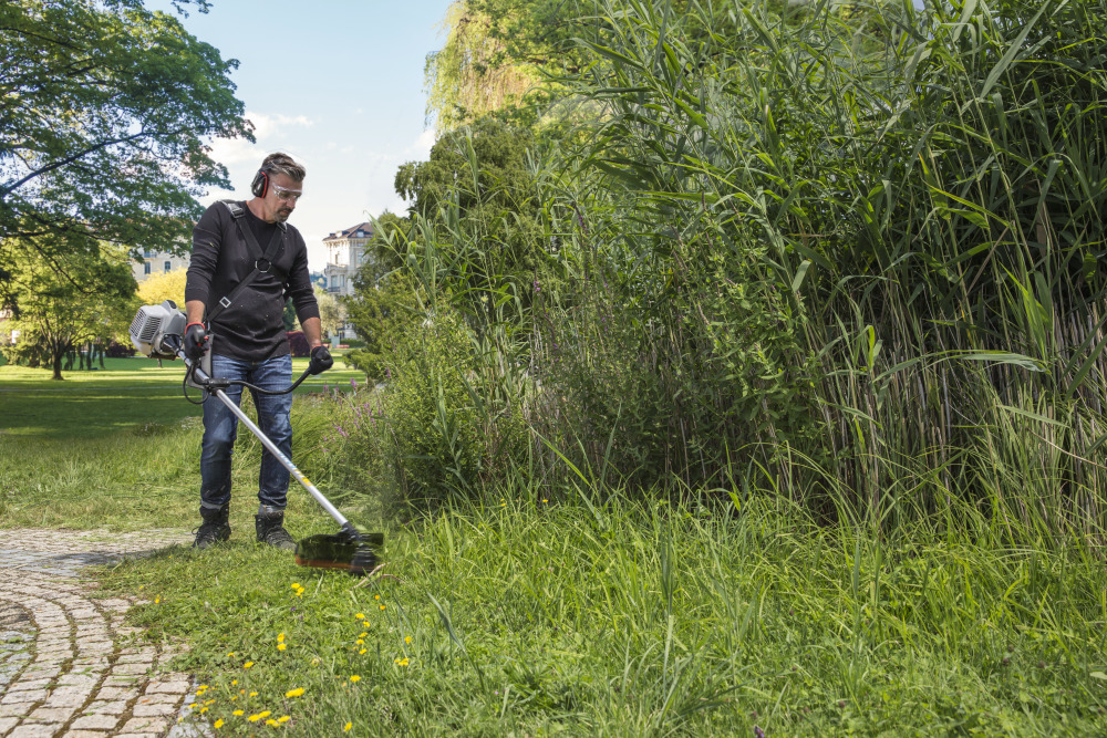 Niska waga, regulowana kierownica typu bike i wygodna funkcja regulacji żyłki - automatyka impulsowa - dla zawsze optymalnej długości żyłki. Wszystkie te cechy zapewniają, że kosa jest bardzo bezpieczna i łatwa w użyciu. Ponadto dzięki pasowi nośnemu praca jest wygodna i ergonomiczna.