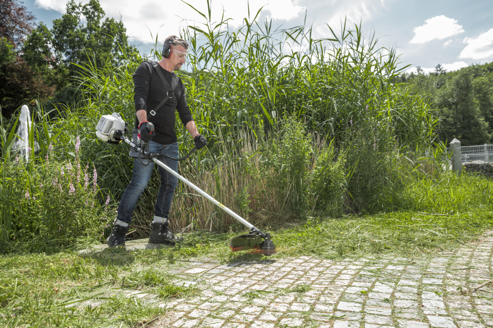 Dzięki łatwemu do uruchomienia silnikowi 2-suwowemu 0,9 kW najnowszej generacji, ta kosa jest niezastąpionym pomocnikiem, z którego możesz łatwo i bezpiecznie korzystać nawet jako początkujący i hobbystyczny ogrodnik. Z wielką mocą pokonasz każdy teren – czy to na dużych trawnikach, w wysokiej trawie czy w zaroślach.
