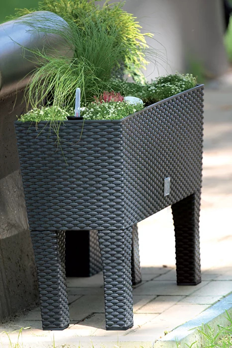 Skrzynka ogrodowa Rato Case High Umbra wsparta na stabilnych nogach doskonale prezentuje się w otoczeniu domu, na tarasach i balkonach.
