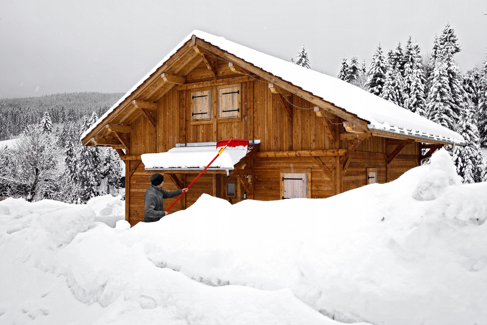 • Skuteczne i bezpieczne usuwanie pokrytych śniegiem obszarów dachu