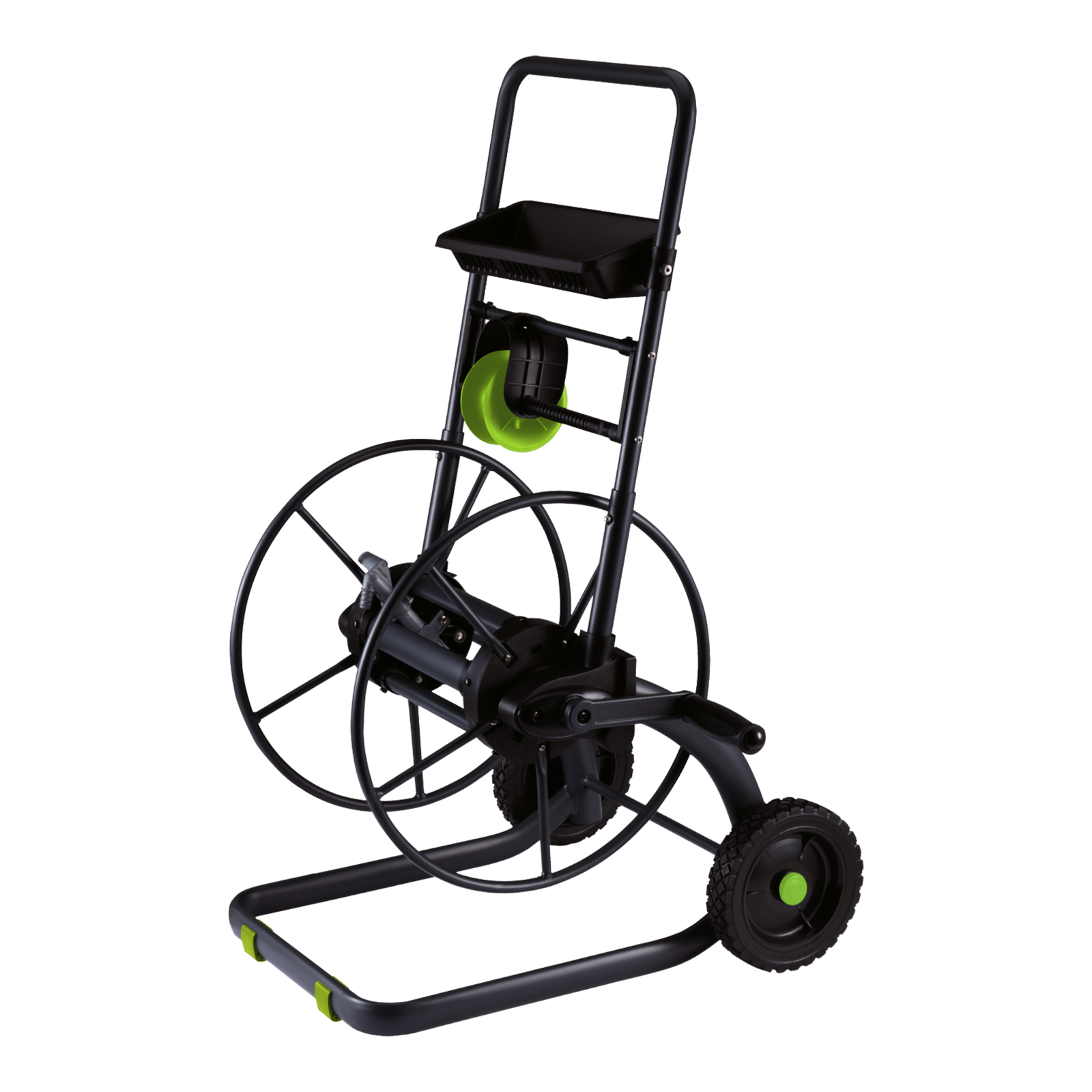 - Górna taca (półka) pozwala na transportowanie armatury nawadniającej lub małych narzędzi ogrodowych