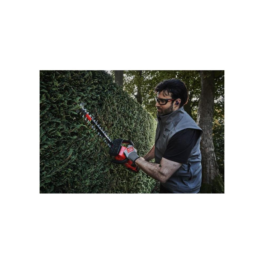 Nożyce Milwaukee do żywopłotu zostały zaprojektowane do efektywnego cięcia i pielęgnacji zarośli zarówno przez profesjonalistów jak i entuzjastów prac we własnym ogrodzie. Ostrze o długości 60cm pozwala na precyzyjne cięcia gałęzi o średnicy nawet 20mm. Dzięki dodatkowemu akumulatorowi w zestawie możemy uzyskać nawet cztery godziny czasu pracy.
