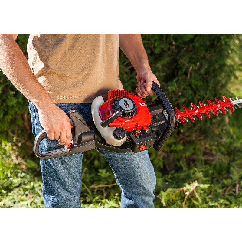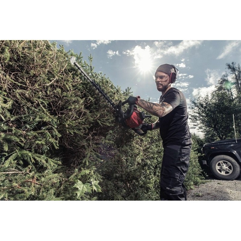 Bardzo ważny jest czynnik bezpieczeństwa: z jednej strony nożyce do żywopłotu na benzynę zapewniają dużą swobodę ruchu bez ryzyka przecięcia przewodu elektrycznego. Z drugiej strony przykręcana ochrona chroni operatora podczas wykonywanej pracy.
