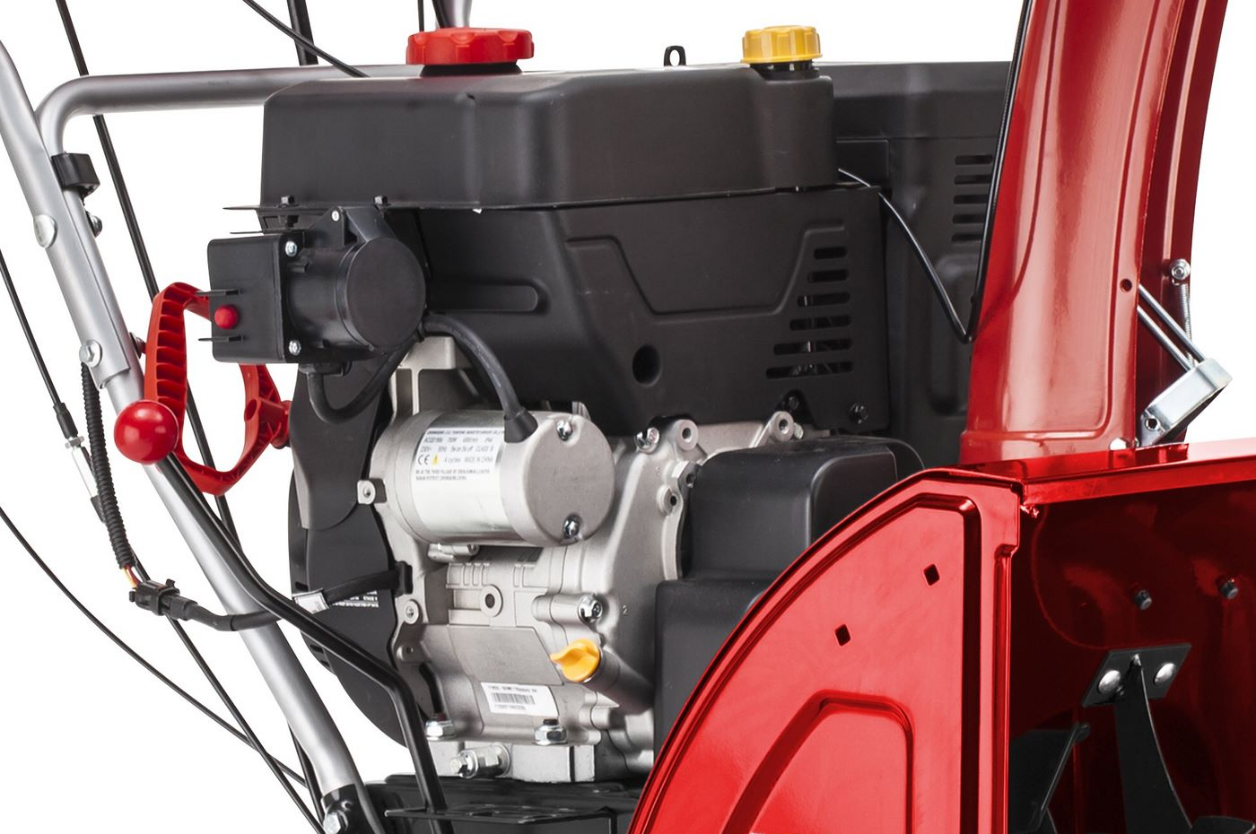 Dzięki odśnieżarce spalinowej 760.4 TE LED uciążliwe zimowe prace pielęgnacyjne stają się niemal bezwysiłkowym zajęciem na świeżym powietrzu. Odśnieżaj zamiast odgarniać śnieg łopatą. Nawet duże ilości ubitego śniegu nie stanowią problemu dla tego modelu. Możesz także korzystać z funkcji zwiększających komfort, takich jak:Mocny silnik odśnieżarki o pełnej mocy 9 kW i pojemności 420 cm3 oferuje wyjątkową wydajność dzięki technologii OHV z zaworami górnymi, co jest zauważalne dzięki dużej mocy i niskiemu zużyciu paliwa. Szerokość odśnieżania wynosi 76 cm, wysokość wlotu śniegu do 54,5 cm, a w zależności od warunków śnieg jest wyrzucany na odległość do 15 metrów. Szczególnie ergonomiczne dźwignie obsługi i nowo zaprojektowana korba obrotowa do wyrzucania śniegu ułatwiają pracę. Dwustopniowa (ślimak i koło wyrzucające) odśnieżarka 760.4 TE LED jest szczególnie wydajna w obsłudze dzięki mocnemu silnikowi OHV przystosowanemu do pracy w zimie oraz wybieranemu napędowi kół z 6 biegami do przodu i 2 do tyłu. Napęd gąsienicowy zapewnia dobrą trakcję i łatwość manewrowania nawet w najbardziej niesprzyjających warunkach. Z tym topowym modelem śnieg może nadejść.