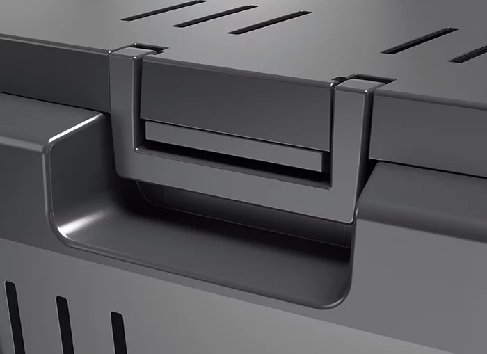 Kompostownik wyposażony jest w duży otwór do wsypywania resztek organicznych, który zamykany jest pokrywą wyposażoną w ergonomiczny uchwyt stanowiący jednocześnie zabezpieczenie przed otwarciem przez wiatr lub zwierzęta. Dolna zasuwa umożliwia wygodne wyjmowanie kompostu.