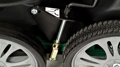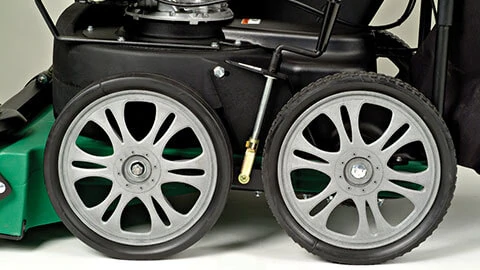 Duże twarde koła 14″ niwelują nierówności terenu i ułatwiają poruszanie.