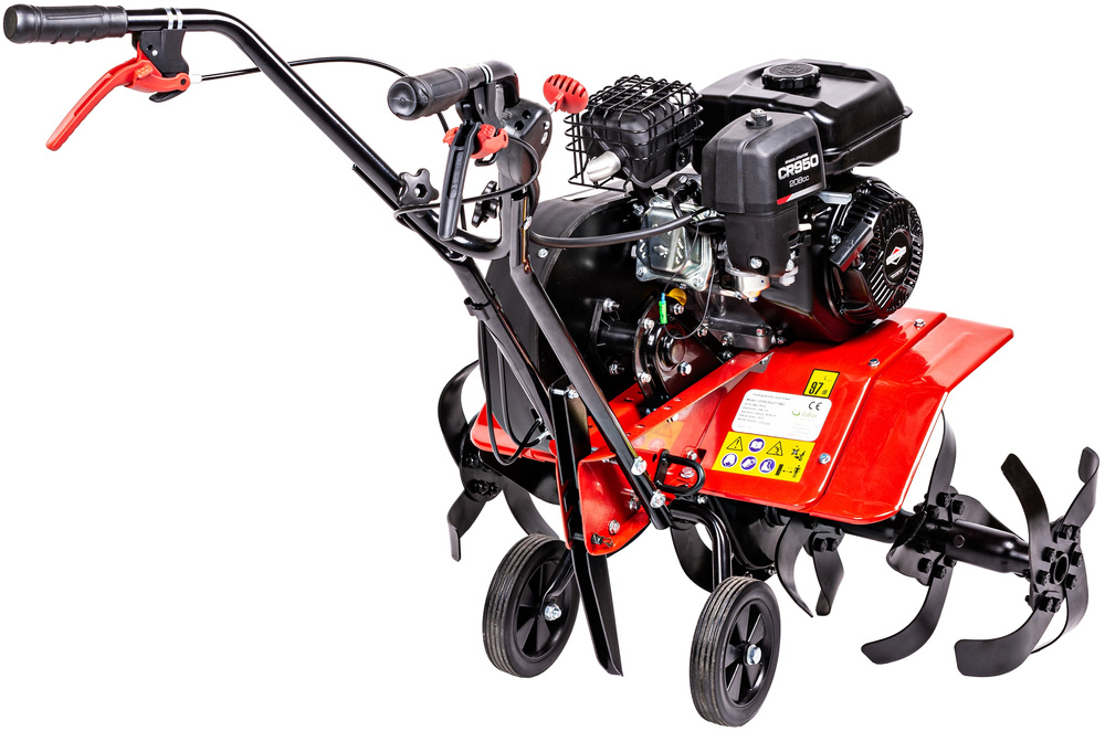 Glebogryzarka CEDRUS GL07-B&S z mocnym silnikiem spalinowym OHV Briggs & Stratton CR950 o pojemności 208 cm3 i mocy 6,5 KM. Silniki OHV charakteryzują się wysoką mocą przy jednoczesnym stosunkowo niskim spalaniu. Glebogryzarka jest wyposażona w zestaw stalowych noży o średnicy 35 cm, które mogą być stosowane w konfiguracjach 2/4/6 częściowych. To sprawia, że można regulować szerokość roboczą w zakresach 30/50/85 cm, co jest nieocenione przy zróżnicowanym podłożu o różnej jakości gleby. Głębokość jest regulowana przez włożenie tradycyjnego bolca, który służy jako hamulec, nie tylko zmniejsza fizyczne wymagania operatora, ale także zwiększa jakość rozcieńczenia struktury gleby. Kierownica ze stali umożliwia operatorowi pełną kontrolę. Oczywiście występuję również dźwignia zabezpieczenia sprzęgła, aby zapobiec przypadkowemu uruchomieniu ostrza. Urządzenie wykonane ze stali gwarantuje dłuższą żywotność. Waga urządzenia to 55 kg.