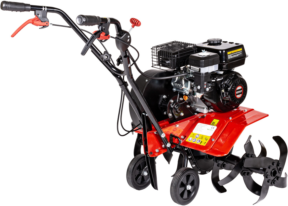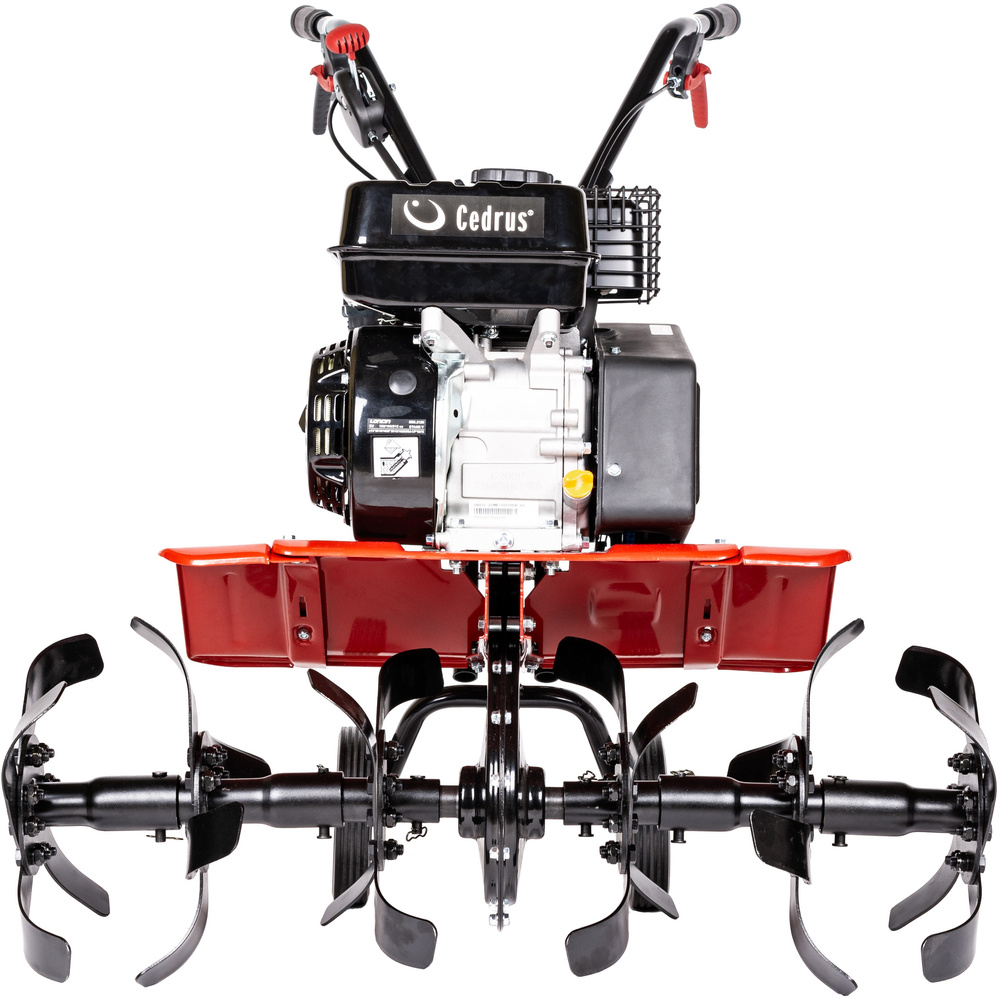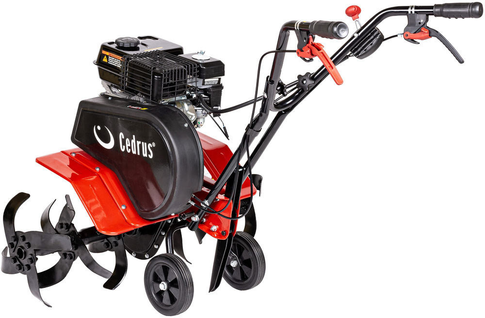 Glebogryzarka Cedrus GL07-LC z mocnym silnikiem o pojemności 196 cm3 i mocy 6,5 KM oraz dużej szerokości roboczej na pewno spełni oczekiwania każdego ogrodnika. Glebogryzarka jest wyposażona w zestaw stalowych noży o średnicy 35 cm, które mogą być stosowane w konfiguracjach 2/4/6 częściowych. To sprawia, że można regulować szerokość roboczą w zakresach 32/50/85 cm, co jest nieocenione przy zróżnicowanym podłożu o różnej jakości gleby. Głębokość jest regulowana przez włożenie tradycyjnego bolca, który służy jako hamulec, nie tylko zmniejsza fizyczne wymagania operatora, ale także zwiększa jakość rozcieńczenia struktury gleby. Kierownica ze stali umożliwia operatorowi pełną kontrolę. Oczywiście występuję również dźwignia zabezpieczenia sprzęgła, aby zapobiec przypadkowemu uruchomieniu ostrza. Urządzenie wykonane ze stali gwarantuje dłuższą żywotność. Posiada 2 biegi: do przodu i do tyłu. Waga urządzenia to 52 kg.