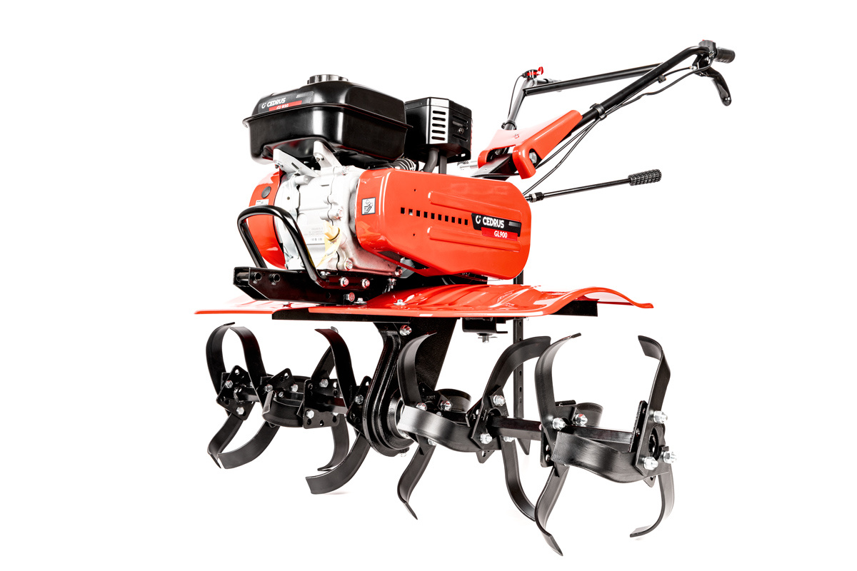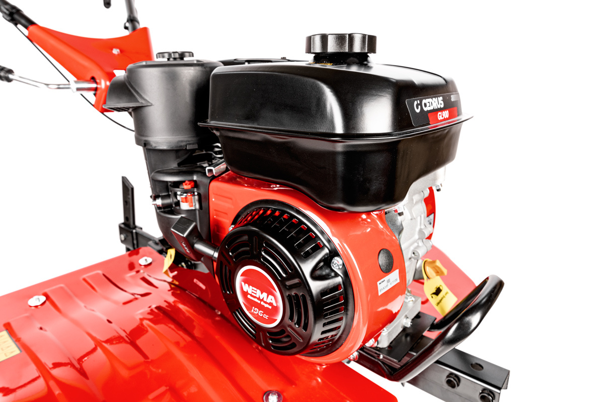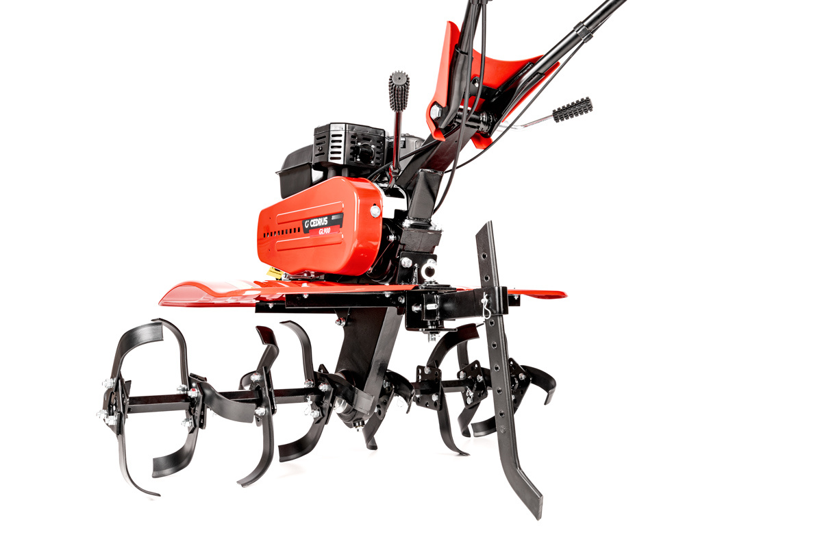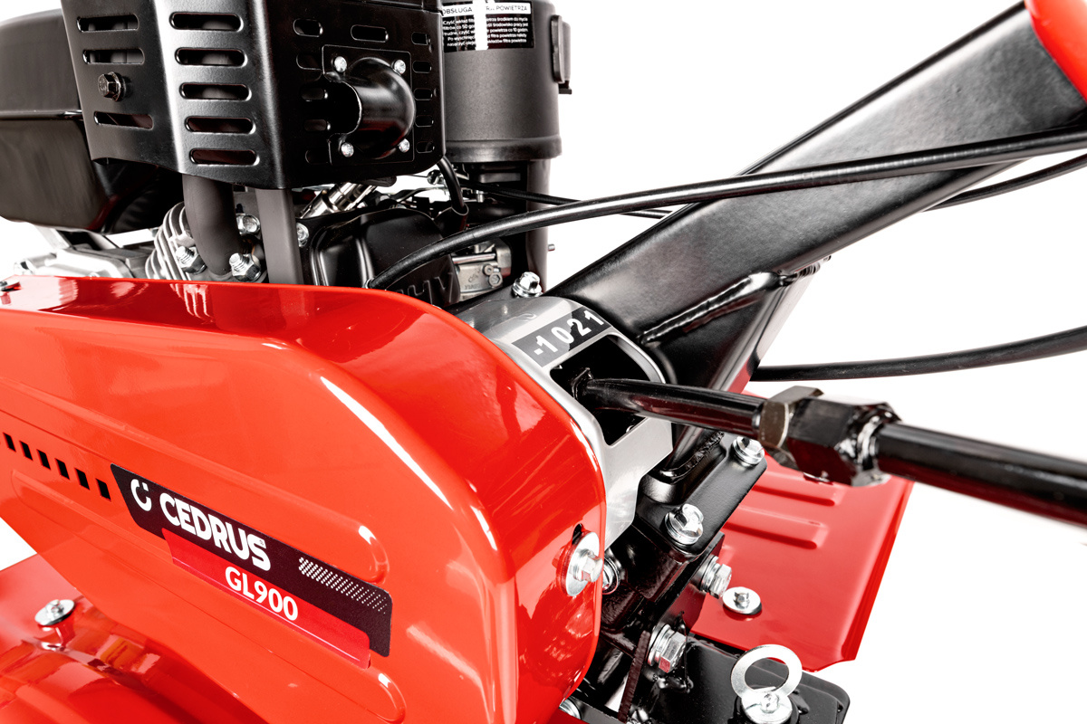 Glebogryzarka spalinowa GL900 to duża i mocna maszyna przeznaczona do ciężkiej pracy w najtrudniejszych warunkach. Silnik OHV o pojemności 196 cm3 zapewnia wystarczającą moc podczas pracy na największej szerokości roboczej. Skrzynia przekładniowa z dwoma biegami do przodu i jednym wstecz zapewnia komfort pracy zarówno dla glebogryzarki, jak i mikrociągnika, ponieważ maszynę można łatwo przekształcić.