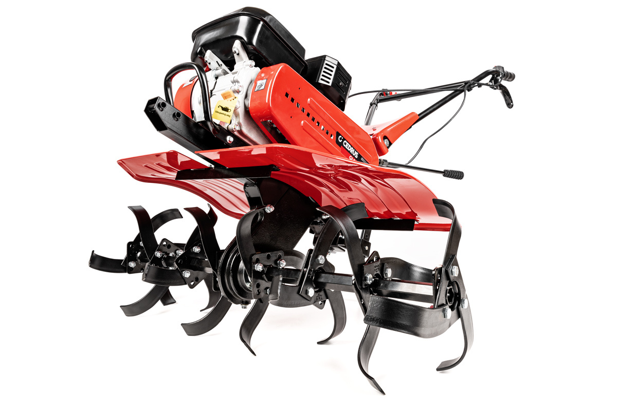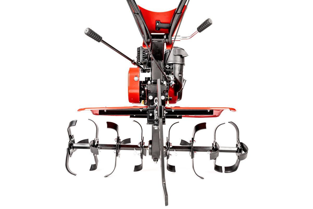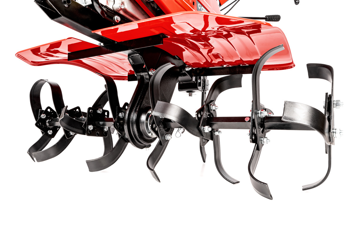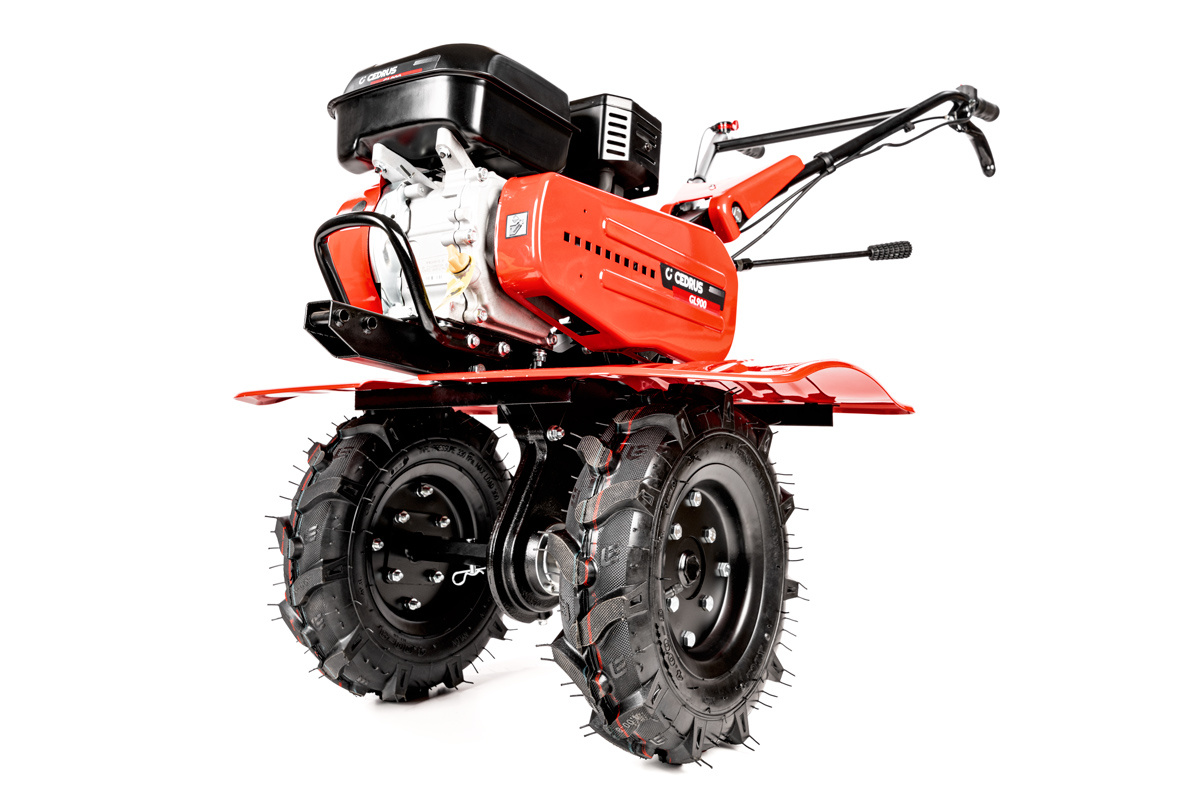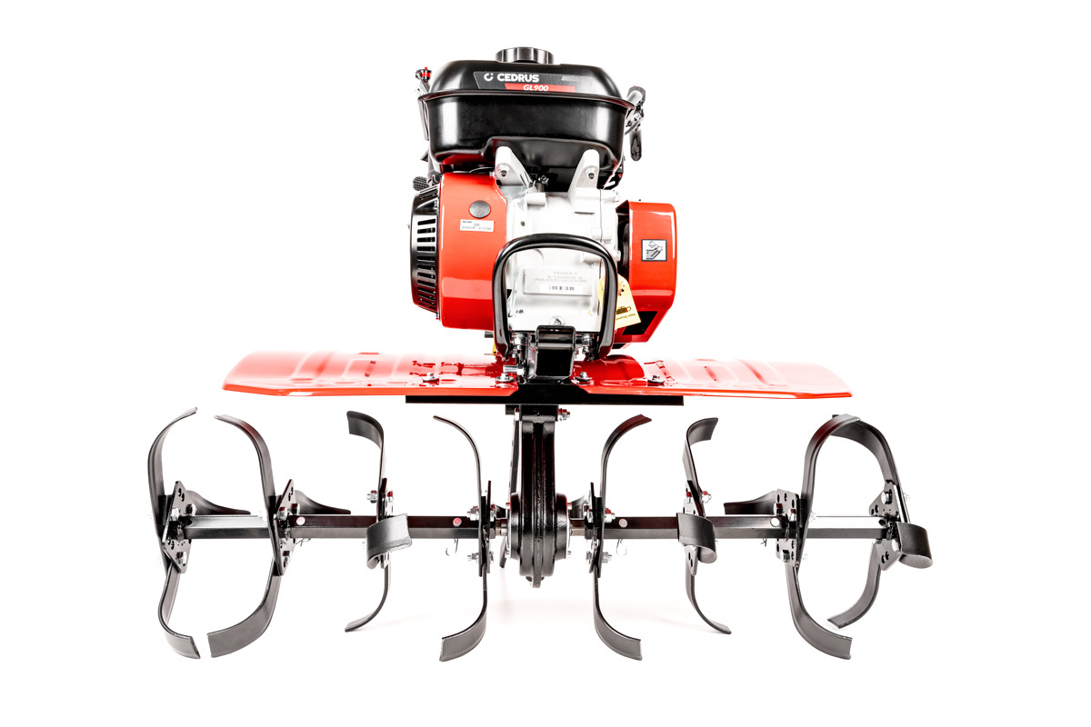 Glebogryzarka spalinowa GL900 to duża i mocna maszyna przeznaczona do ciężkiej pracy w najtrudniejszych warunkach. Silnik OHV o pojemności 196 cm3 zapewnia wystarczającą moc podczas pracy na największej szerokości roboczej. Skrzynia przekładniowa z dwoma biegami do przodu i jednym wstecz zapewnia komfort pracy zarówno dla glebogryzarki, jak i mikrociągnika, ponieważ maszynę można łatwo przekształcić.