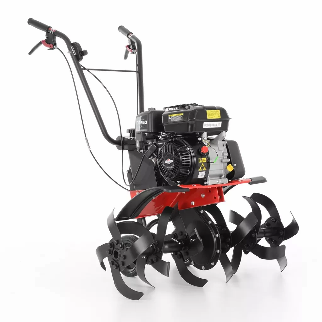 Glebogryzarka z mocnym silnikiem Briggs & Stratton CR950 o pojemności 208 cm3, mocy 4,5 KM oraz dużej szerokości roboczej na pewno spełni oczekiwania każdego ogrodnika. Glebogryzarka jest wyposażona w zestaw stalowych noży o średnicy 38 cm, które mogą być stosowane w konfiguracjach 2/4/6 częściowych. To sprawia, że można regulować szerokość roboczą w zakresach 32/50/84 cm, co jest nieocenione przy zróżnicowanym podłożu o różnej jakości gleby.