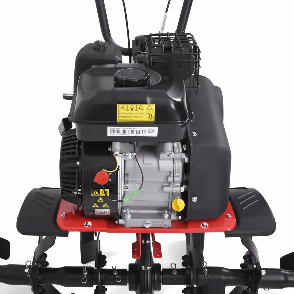 Głębokość jest regulowana przez włożenie tradycyjnego bolca, który służy jako hamulec, nie tylko zmniejsza fizyczne wymagania operatora, ale także zwiększa jakość rozcieńczenia struktury gleby. Kierownica ze stali umożliwia operatorowi pełną kontrolę. Oczywiście występuję również dźwignia zabezpieczenia sprzęgła, aby zapobiec przypadkowemu uruchomieniu ostrza. Urządzenie wykonane ze stali gwarantuje dłuższą żywotność. Posiada 2 biegi: 1 do przodu i 1 do tyłu. Waga urządzenia to 55 kg.