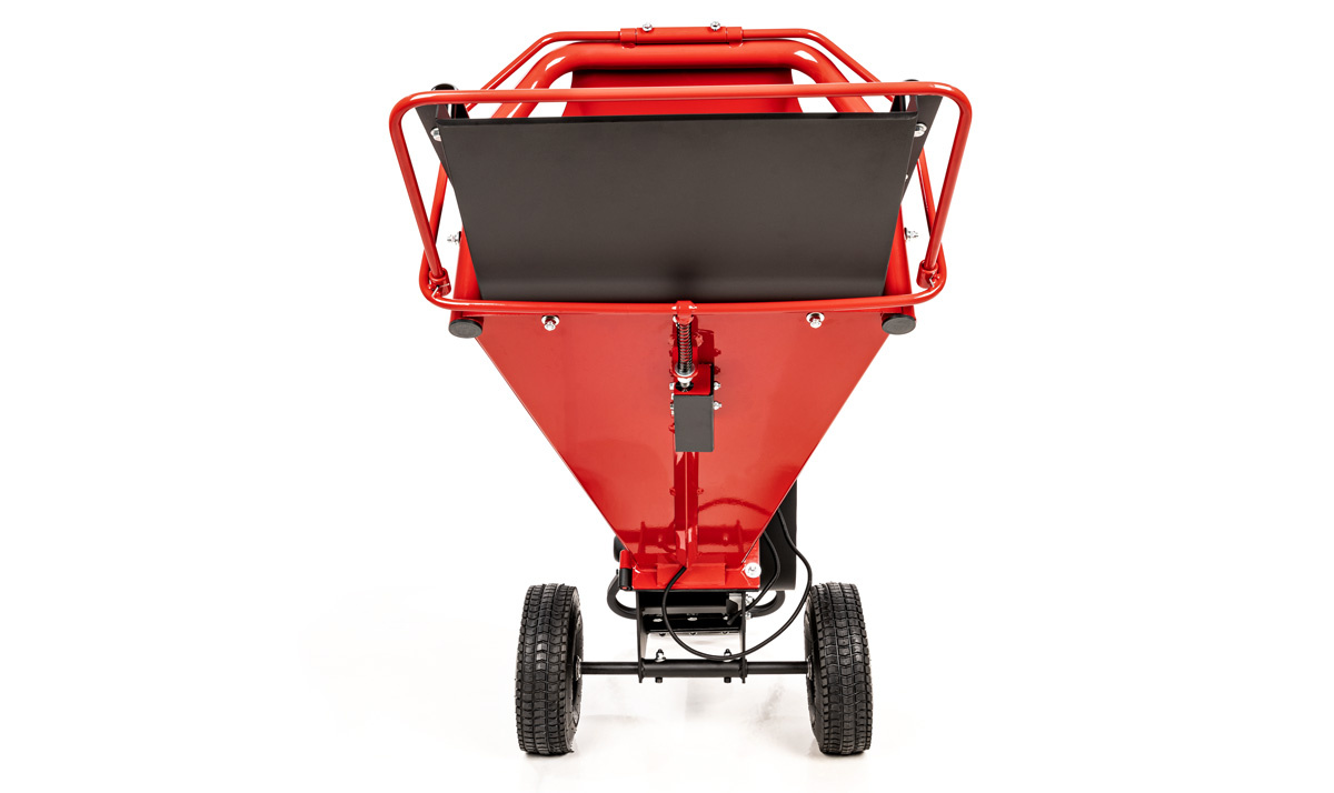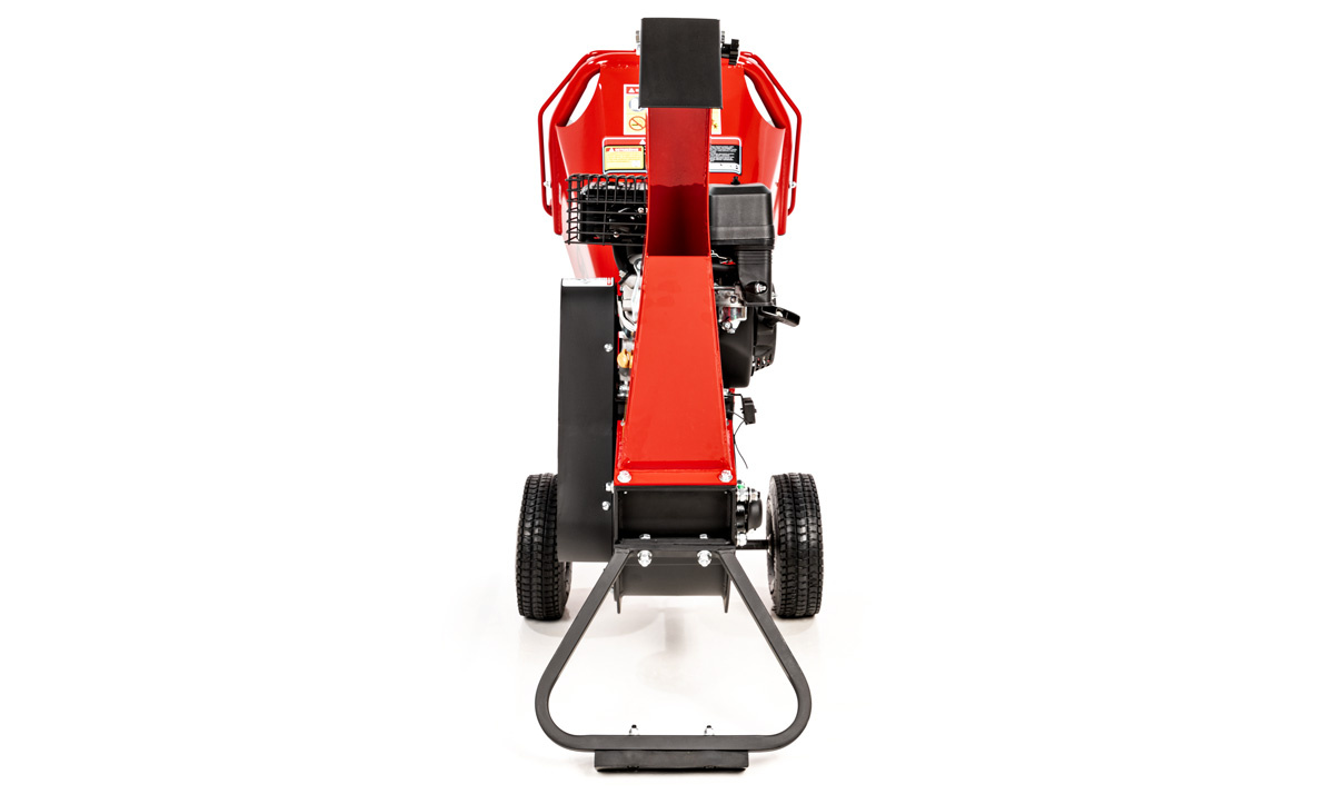 - Szeroki otwór podajnika z gumą zabezpieczającą przed wyrzuceniem zrębka w stronę operatora