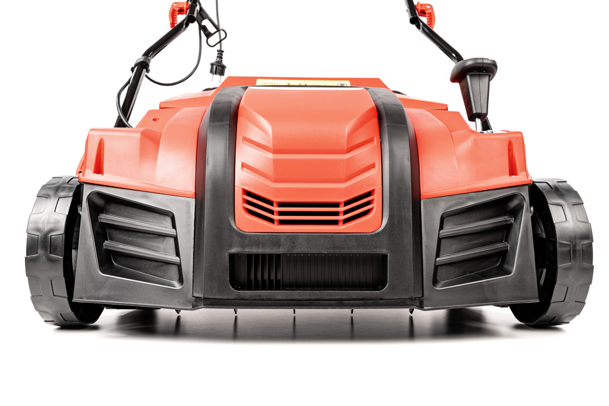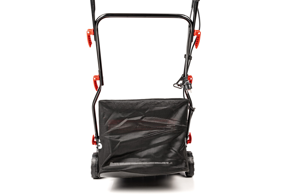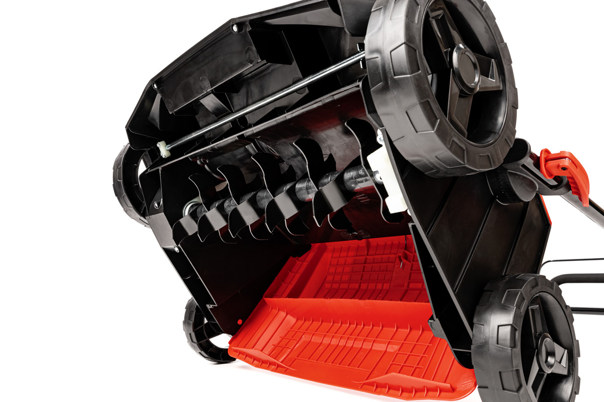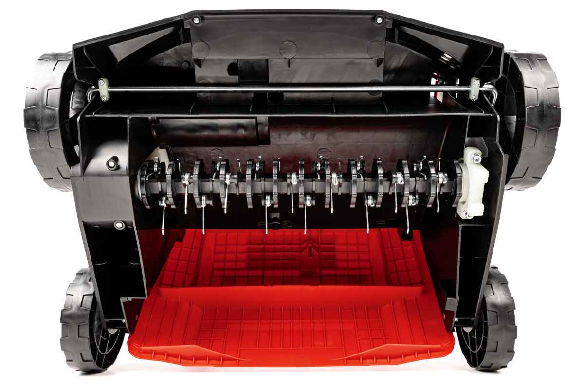 Urządzenie posiada dwa wymienne wałki robocze: wałek z 20 stalowymi nożami do wertykulacji, który skutecznie usuwa mech, filc i martwą trawę, oraz wałek z sprężynowymi drutami do aeracji, wspomagający napowietrzanie gleby i lepsze przyswajanie wody oraz składników odżywczych przez korzenie trawy. Pojemny kosz o pojemności 55 litrów ułatwia zbieranie resztek po zabiegach, co zapewnia porządek podczas pracy. Urządzenie jest lekkie (waga 13,4–15 kg w zależności od źródła) i wyposażone w składany uchwyt, co ułatwia transport i przechowywanie.