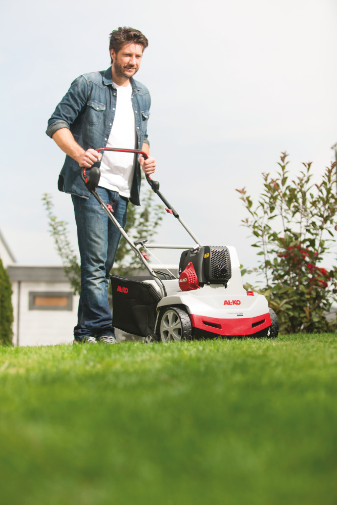 Dzięki dużej szerokości roboczej 38 cm i kompaktowej konstrukcji wertykulator gwarantuje wygodną pracę i szybki postęp pracy, nawet na większych trawnikach.